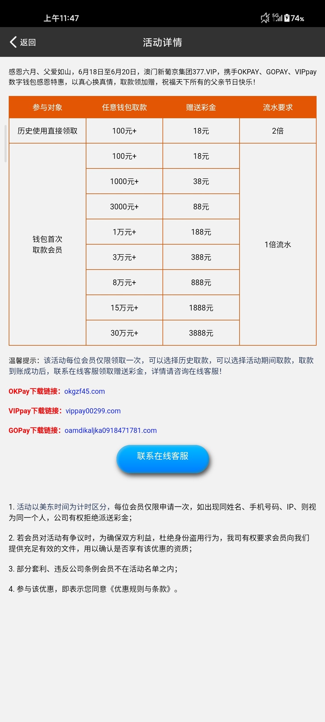 历史使用钱包取款100+送18,其他的自己看活动界面