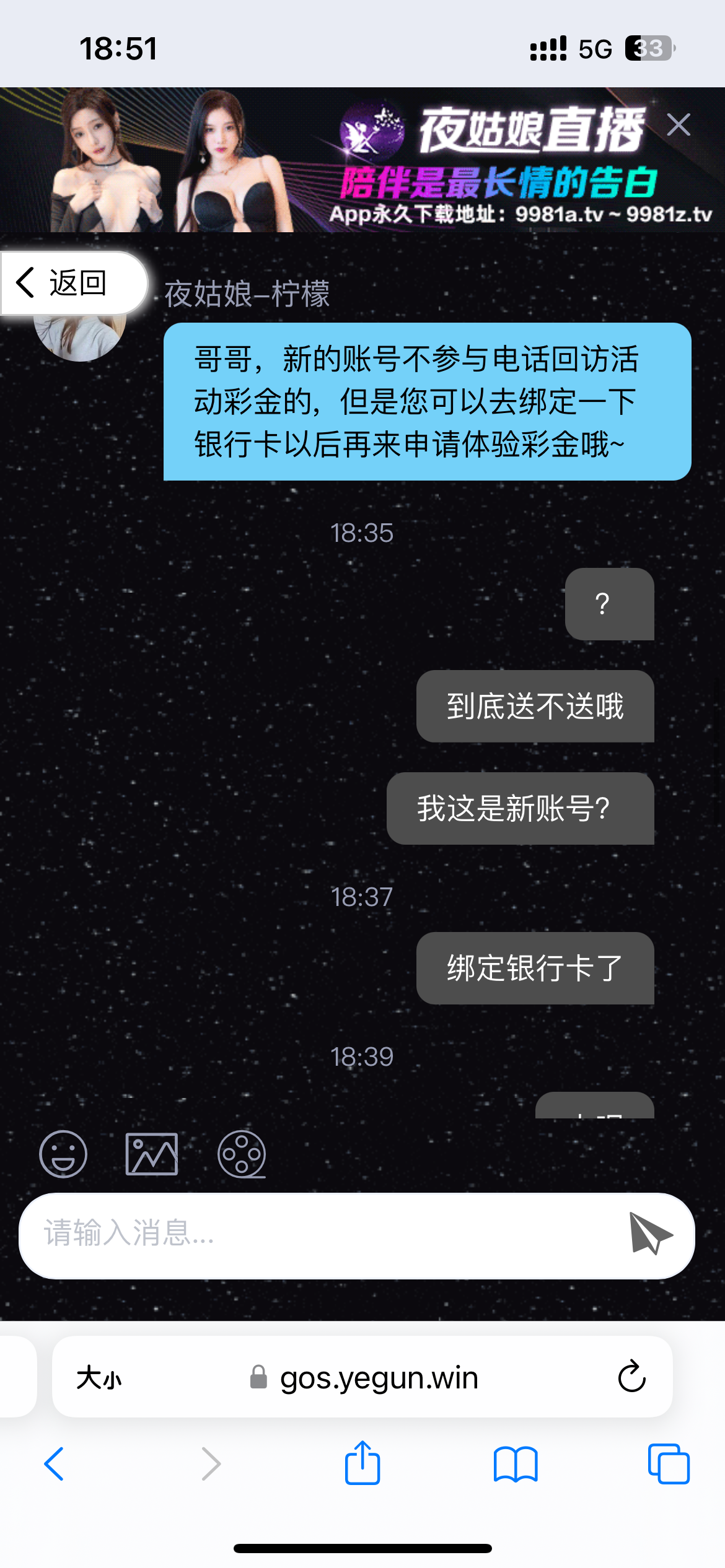 夜姑娘送8元体验彩金
