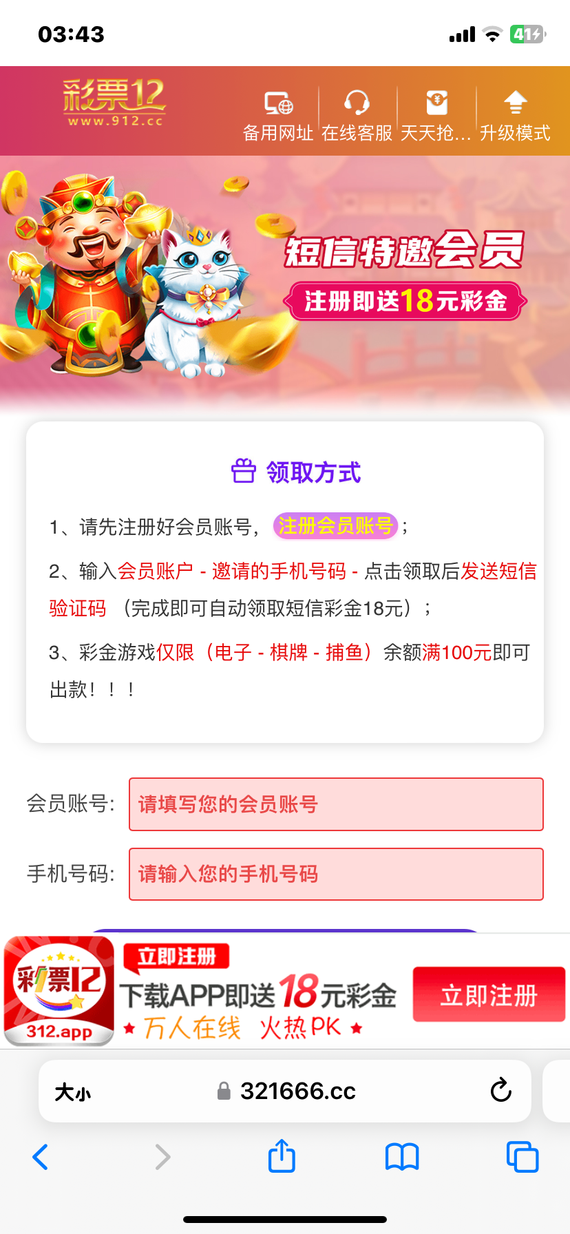 进网站随便输入一个账号 再输入自己手机号 是特邀的话再去注册 特邀碰瓷都去试试 还有下载app彩金 游戏和提款限制自行查看,邀请码:888881