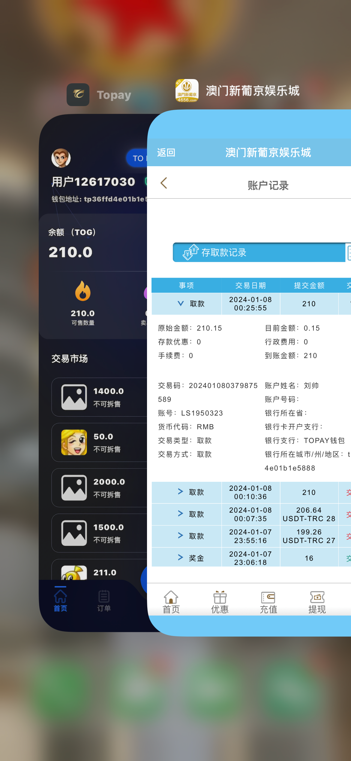 这个要钱包提200 我银行卡刚才提300两次失败 看了失败原因银行风控让用钱包 用topay提出来了