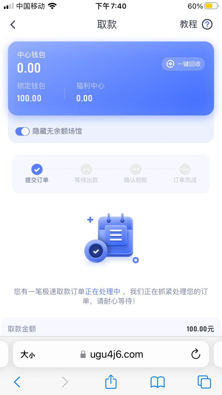 提100等到账