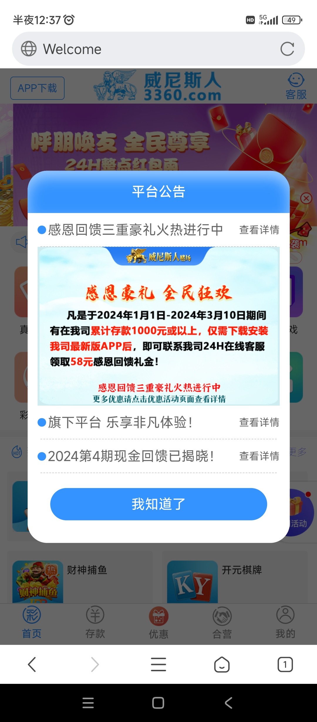 3360威尼斯跟8852澳门银河 今年累计充值1000有58回馈彩金