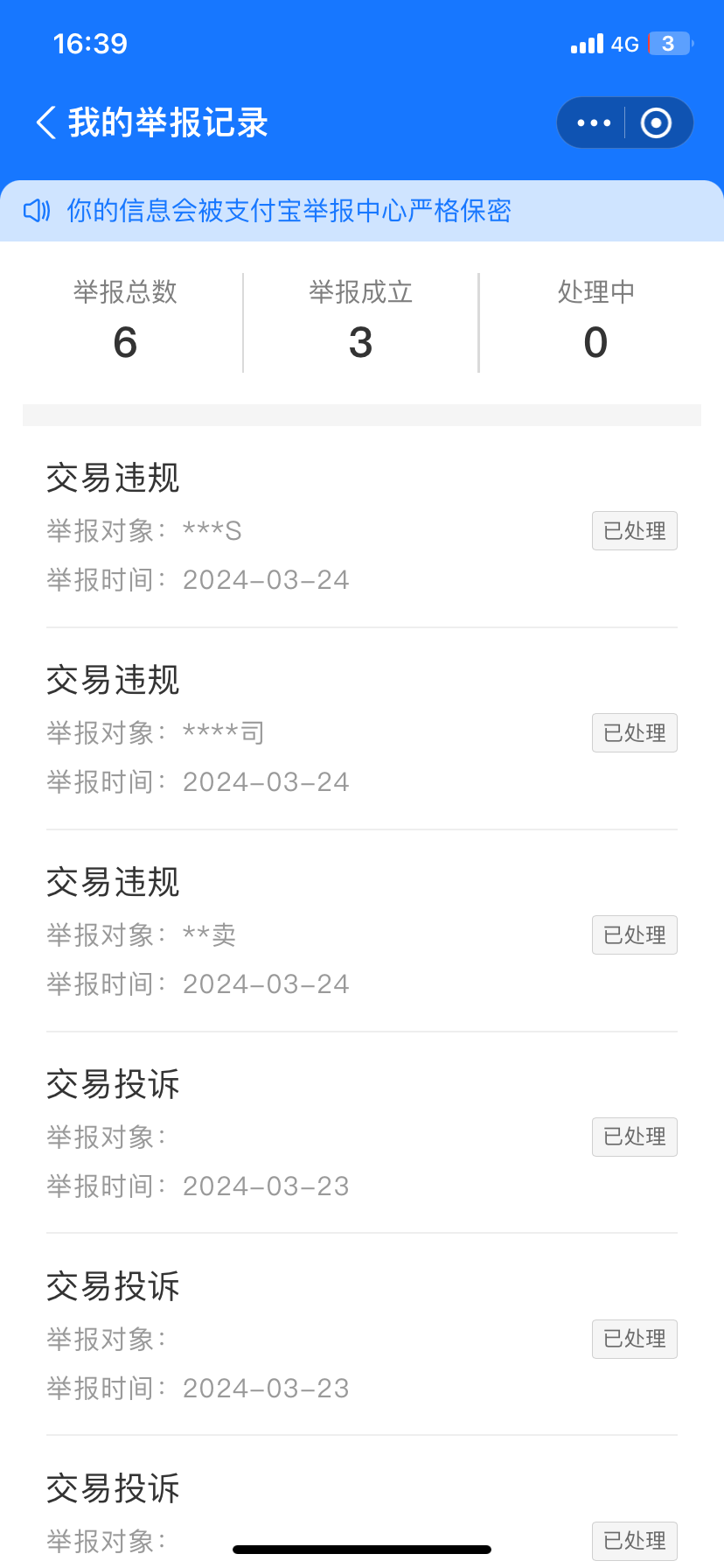 有三笔订单我去投诉。几天了。我问支付宝客服。他们说我是被骗了。让我去公安局处理。