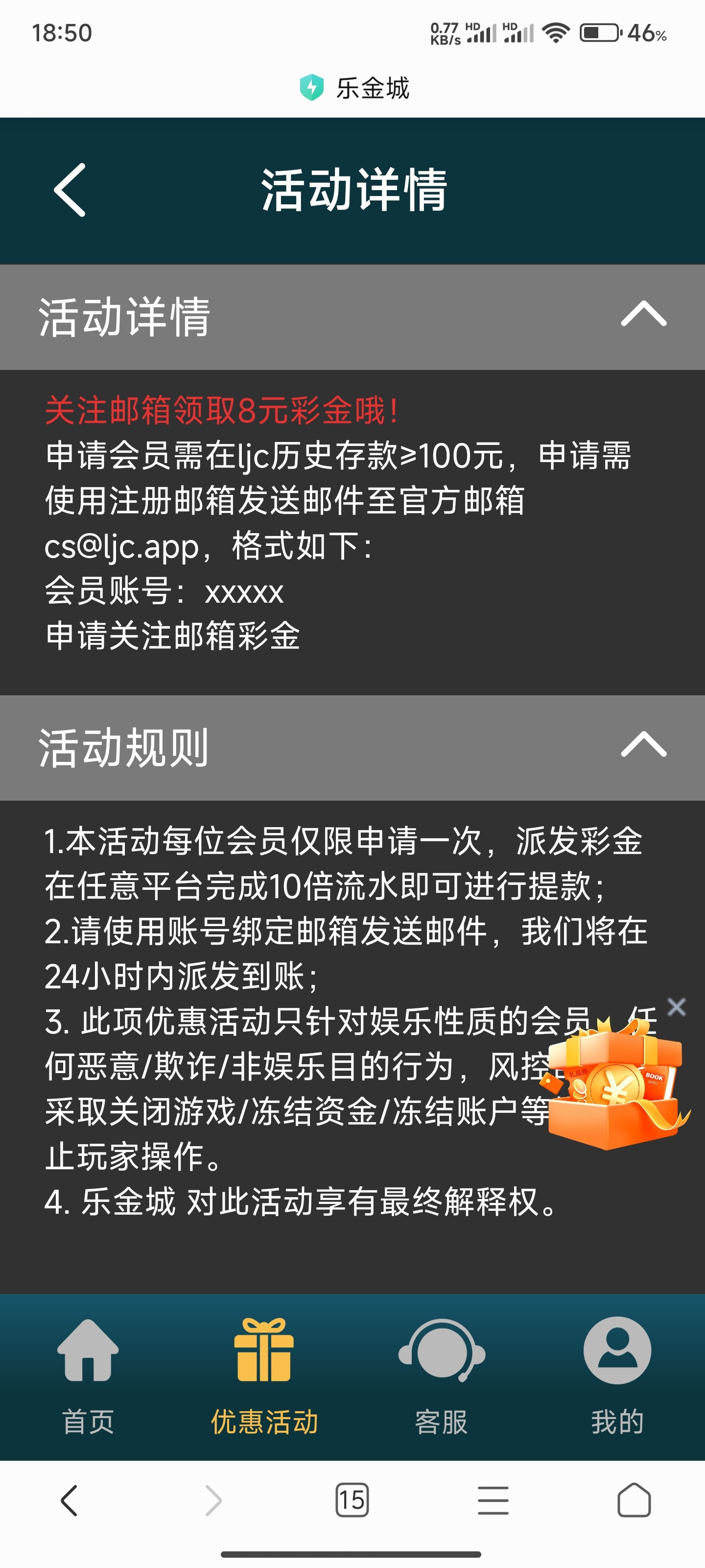 乐金城绑定邮箱送8元