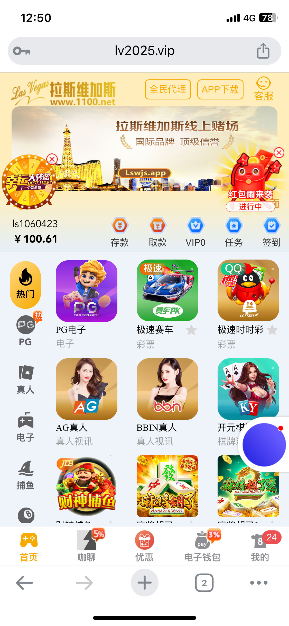 拉斯维加斯回访送 58 然后充值过的可以签到送彩金