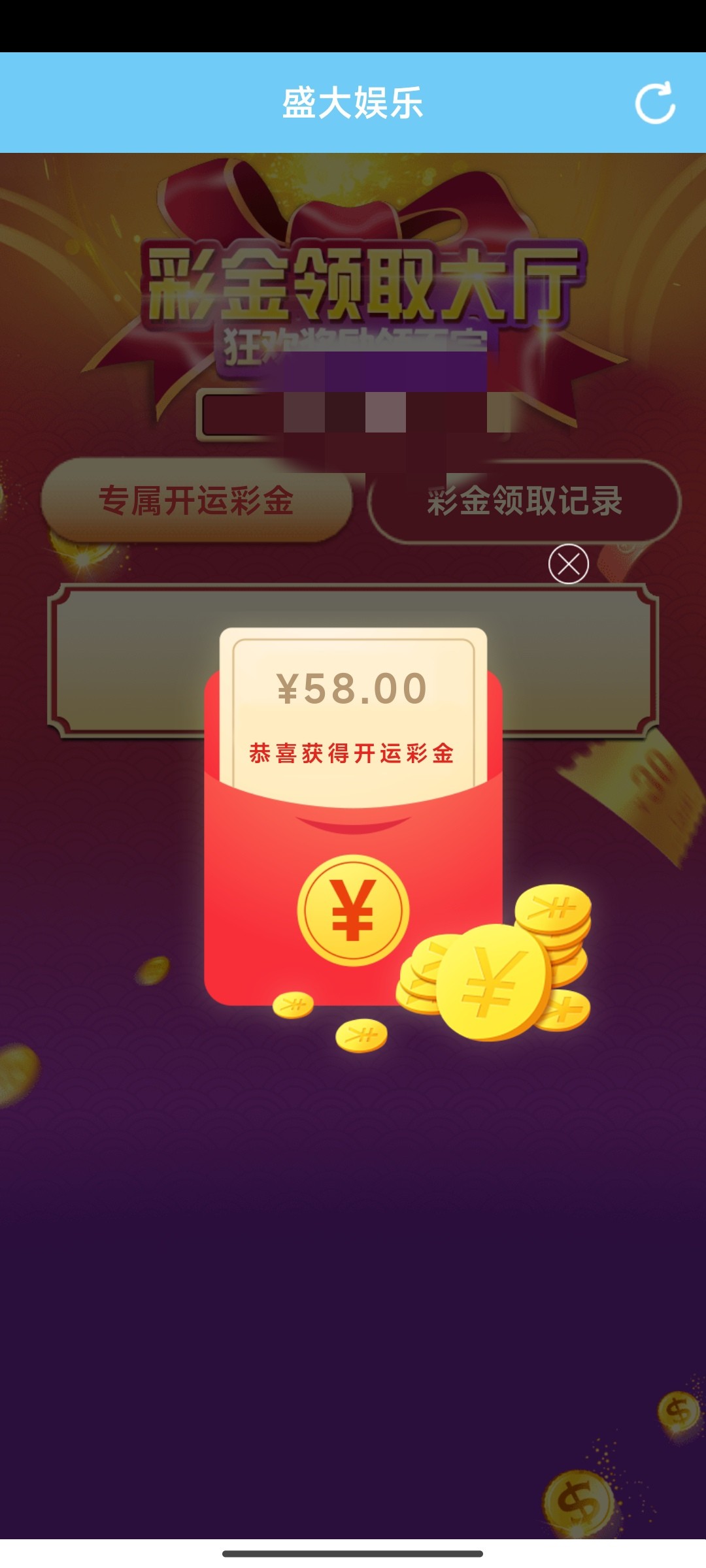 盛大娱乐回馈领彩金