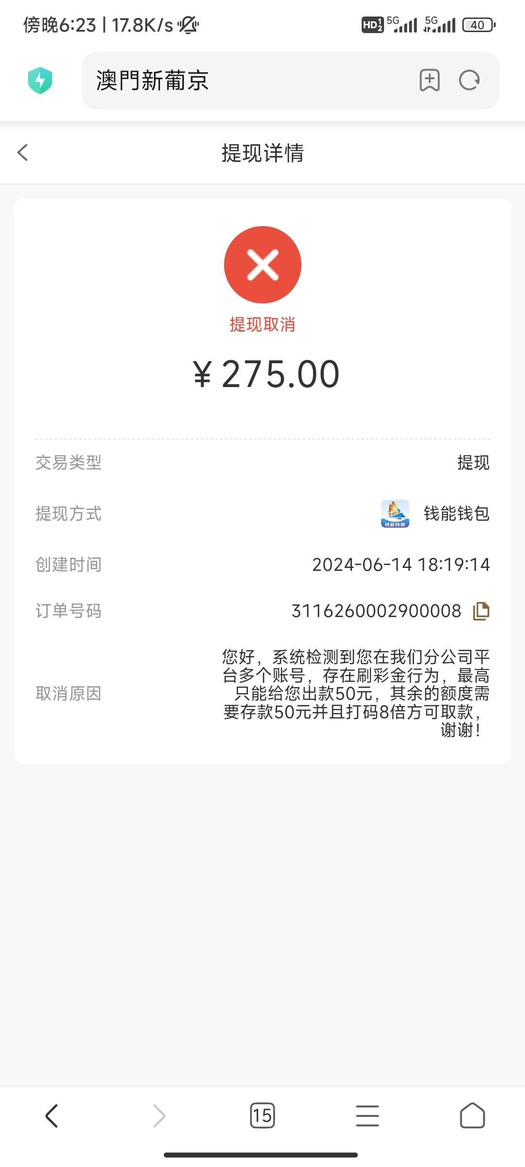 我之前打到800只给出两百后面,然后反水的又打上两千让我充50然后再打一倍流水,充了打够流水还是不给当欢乐豆玩输完了。嫖了150