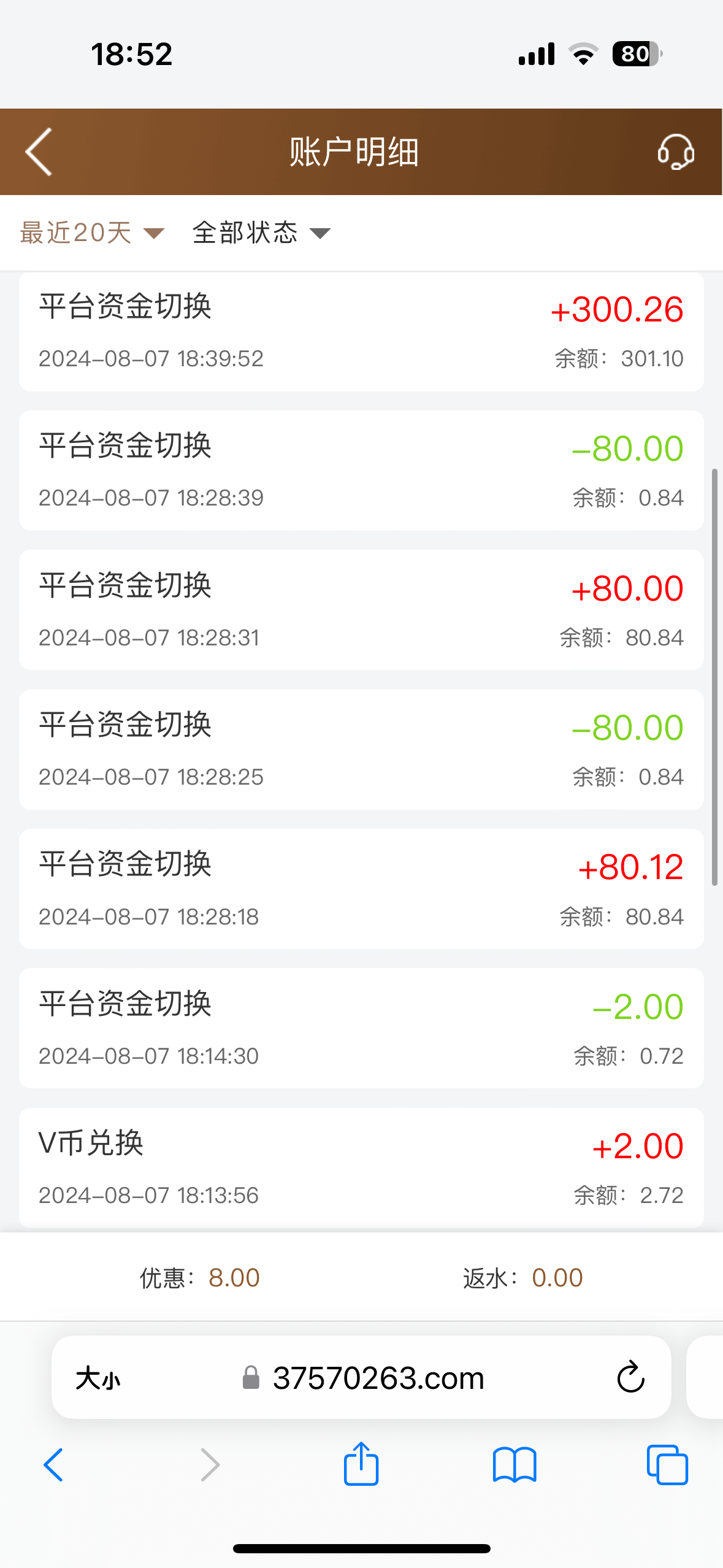 先下载一起看APP后跳转平台送18,送的18没打出来,在一起看每天签到积分兑换兑换了6块,提款100没要手持已到账,最好只玩PG,可能部分要手持,看运气了,麻2有水