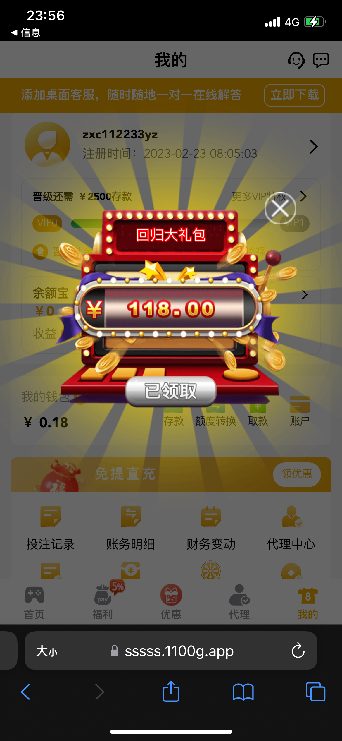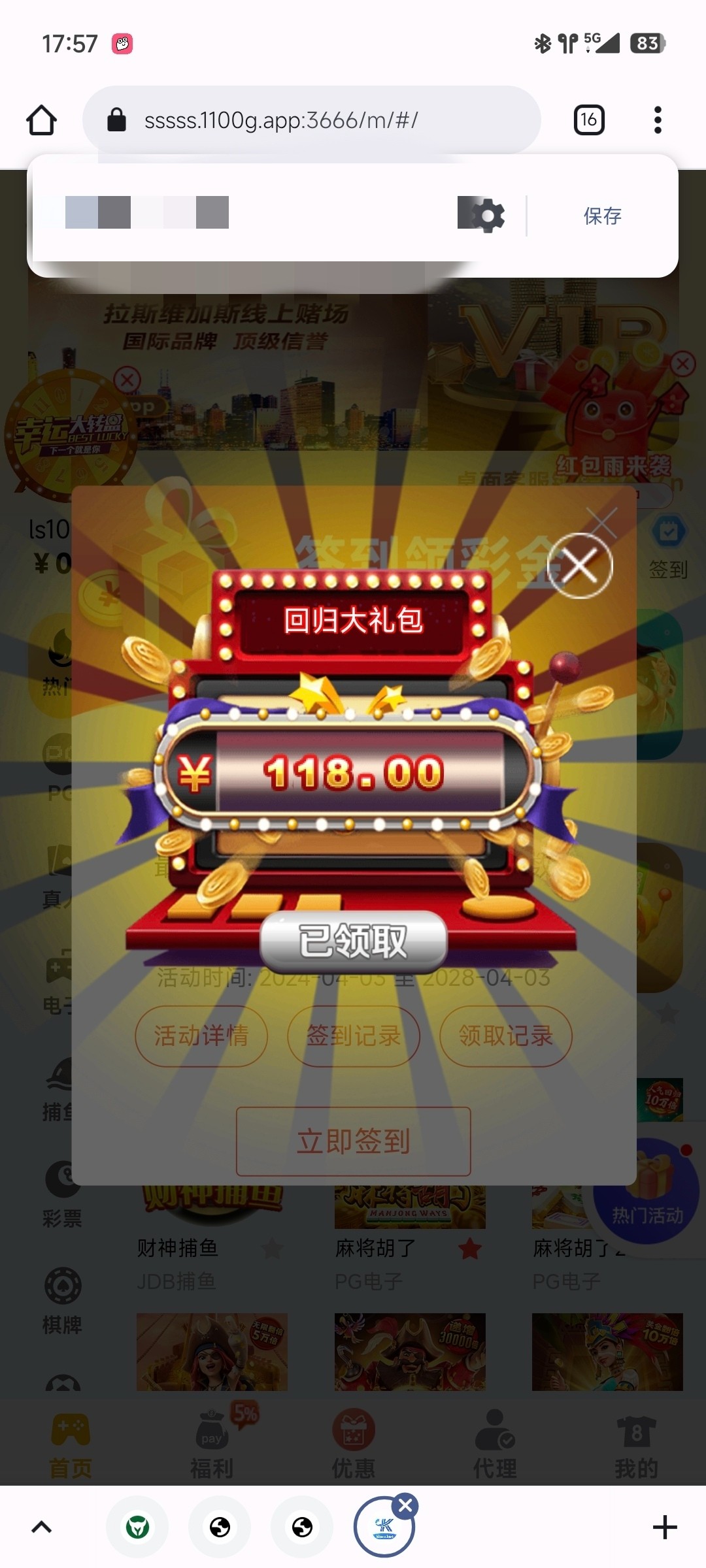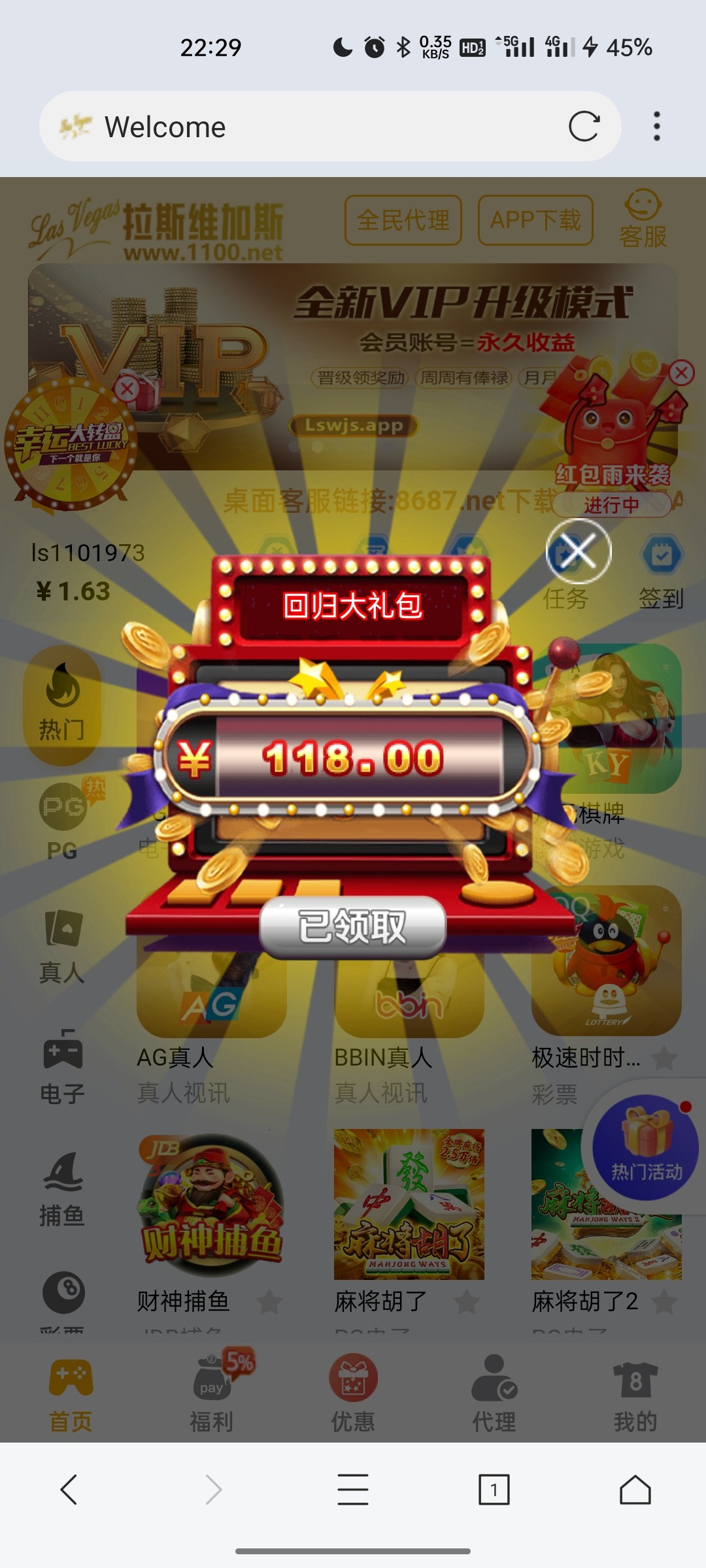 老用户登录看看有没有回馈彩金,有的直接回馈118彩金,好像充值过的才有,具体自测吧。