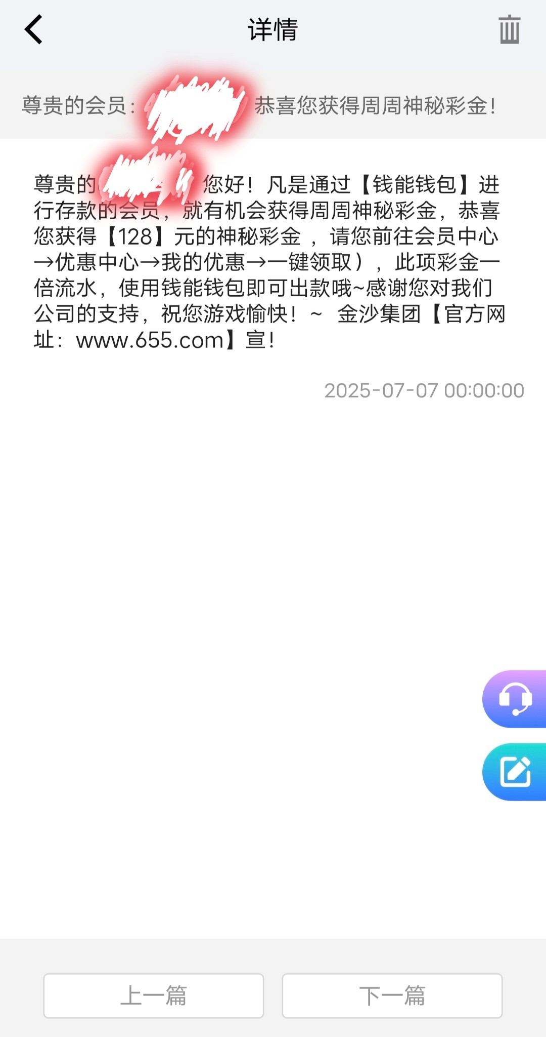 一直没收到,从出来到现在都没收到过,钱能单笔充值一万都没有