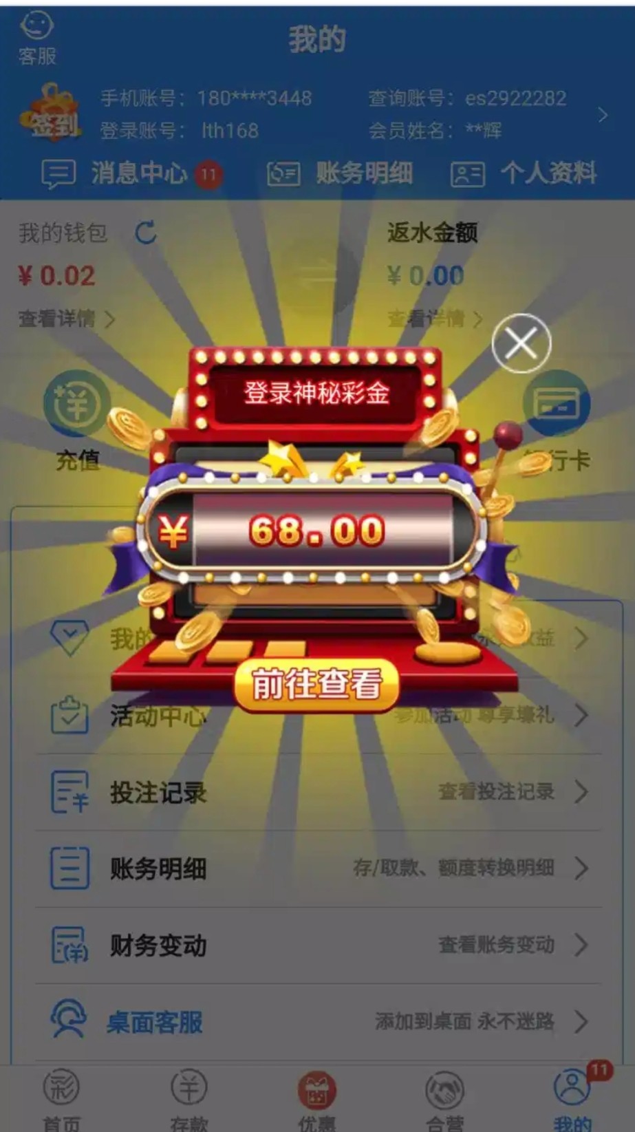 半个月没充值过了今天弹窗送68
