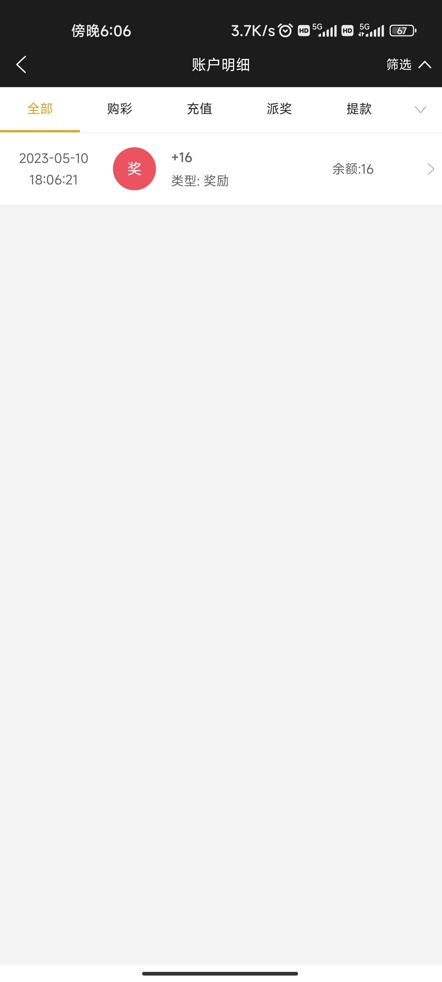 到了。兄弟们,我提了100送的16打的,出款到账