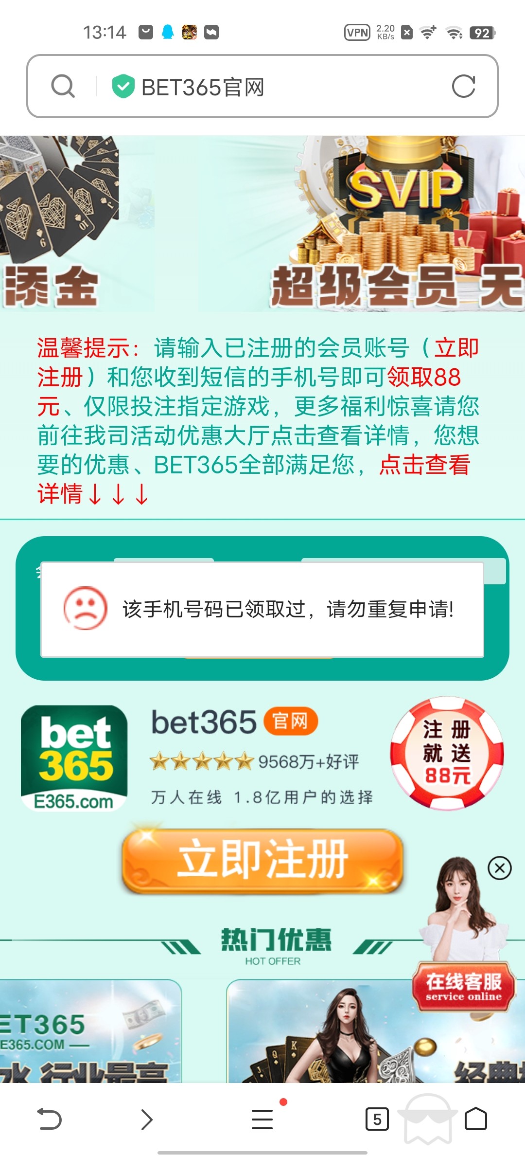 asdd8522 别先输入手机号,先去注册账号,不然随便输个账号万一是特邀回来就显示被领取过了,真的恶心