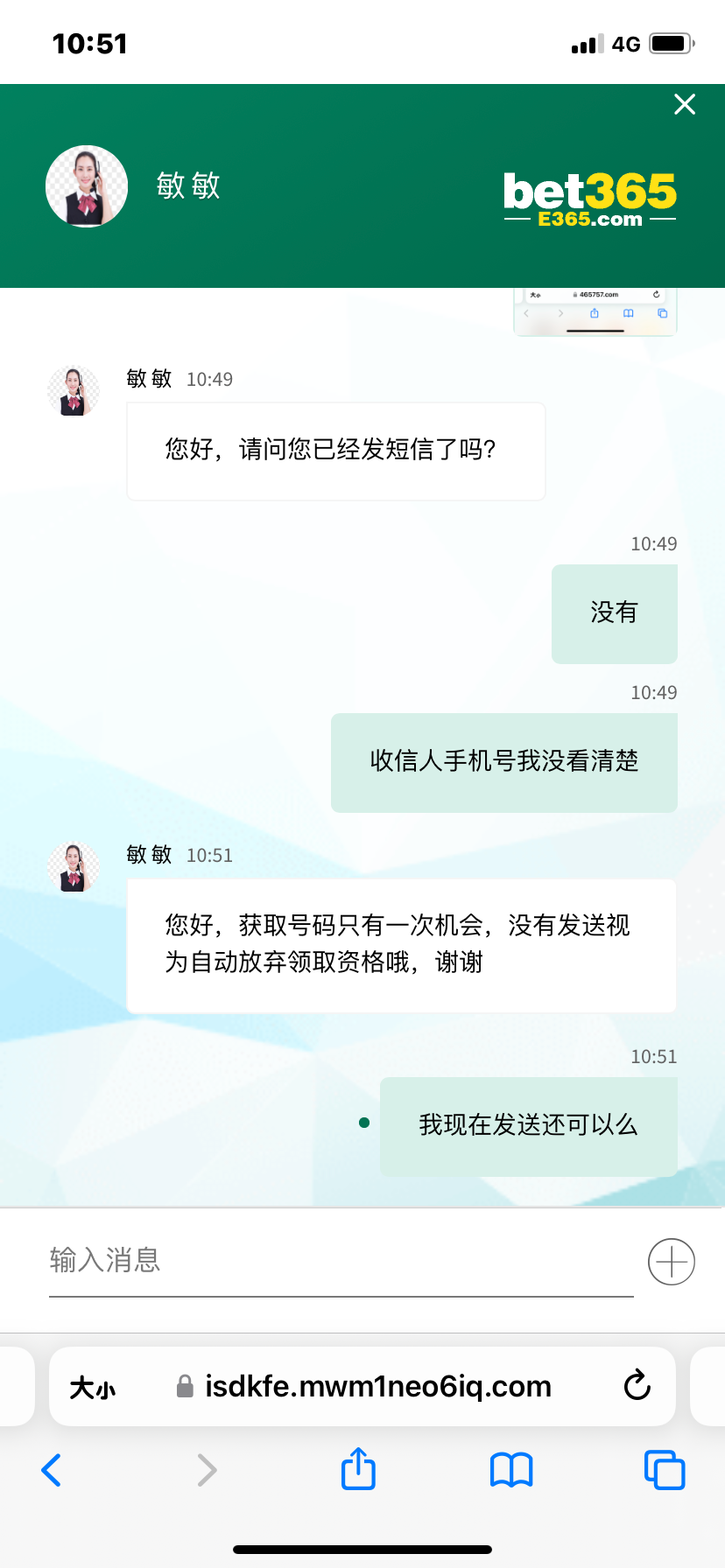 k821705451 有短信,没送。