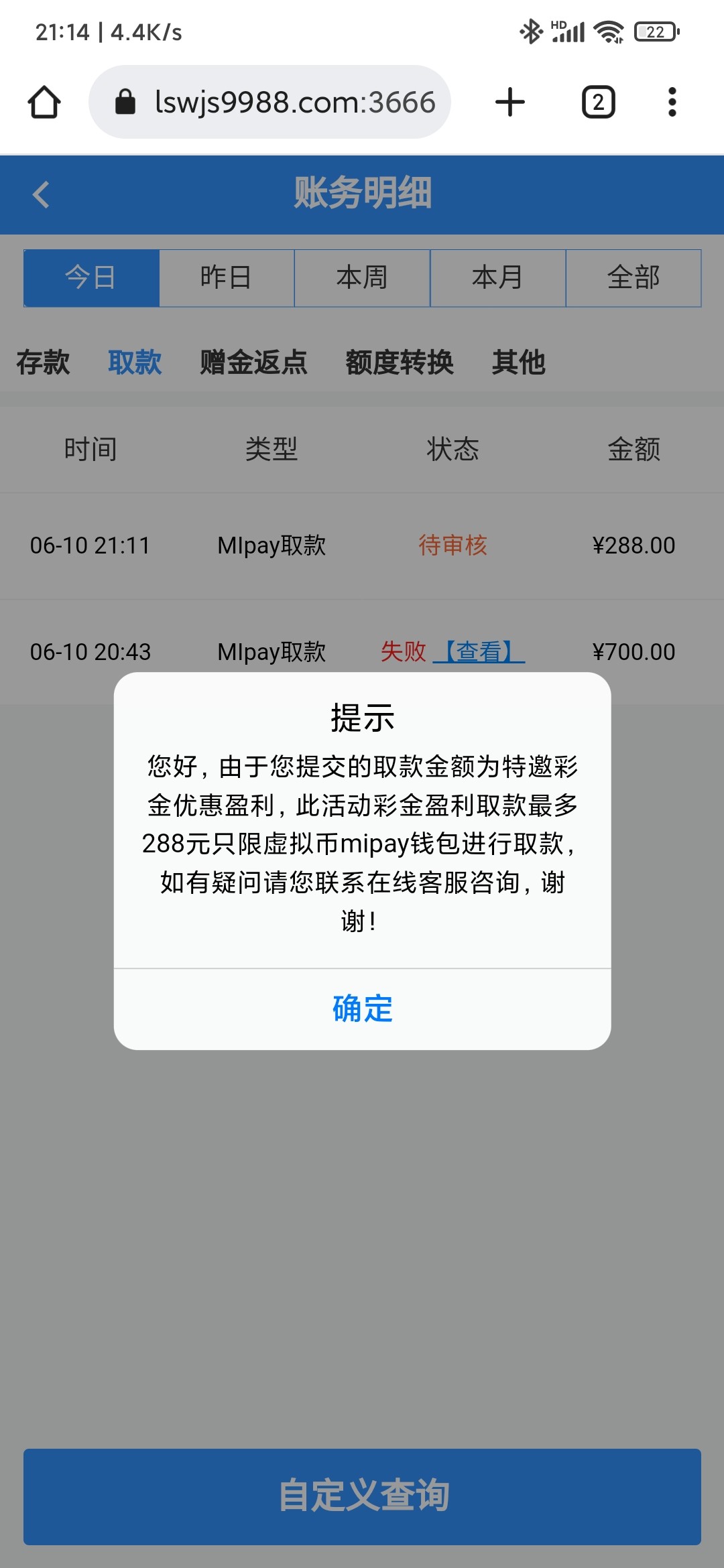 亲测可以到账mipay钱包,不知道是不是电话特邀才行,我提款上限只能288