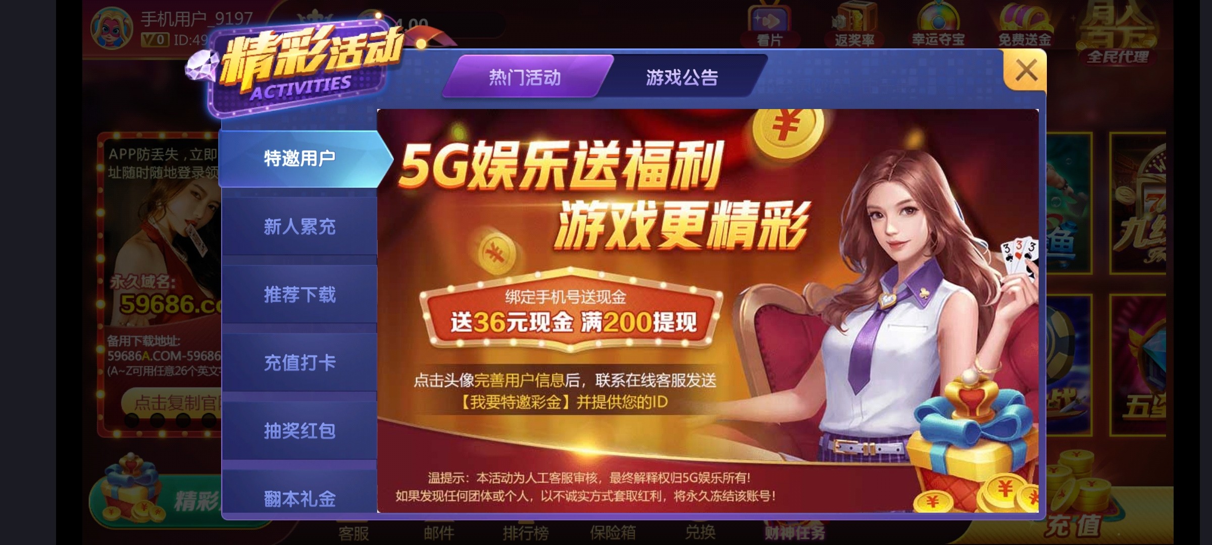 5G娱乐新用户送36彩金