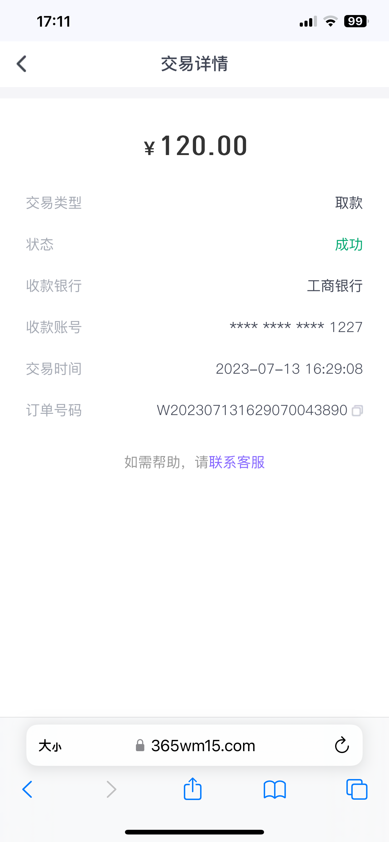 出款120 到账了