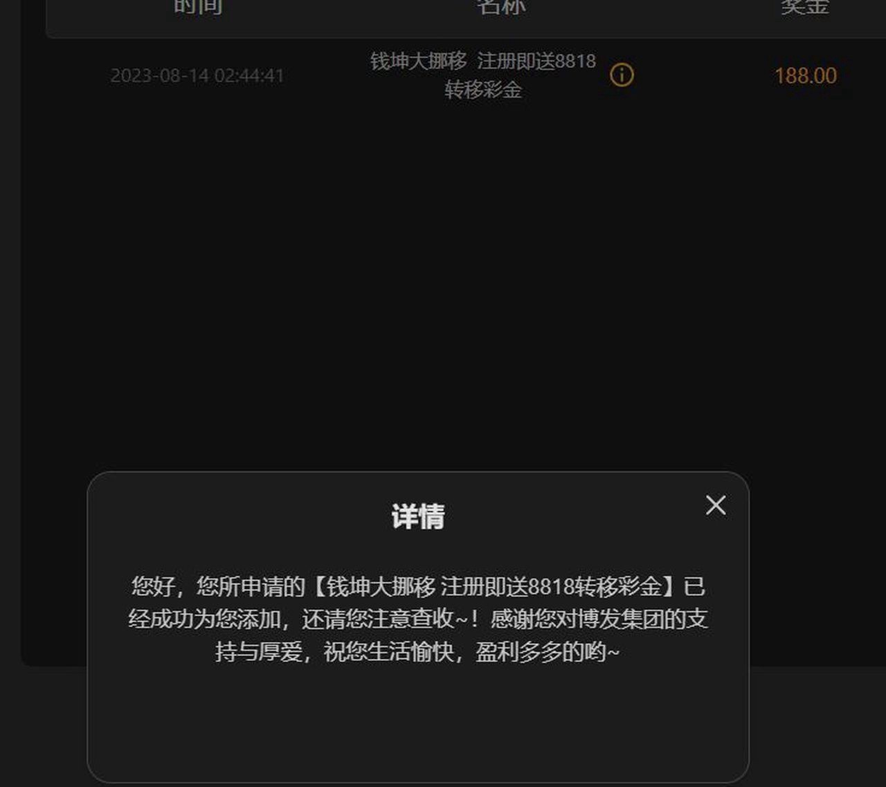 之前988钱包注册送18彩金可以充值到这个平台,然后去申请转移彩金