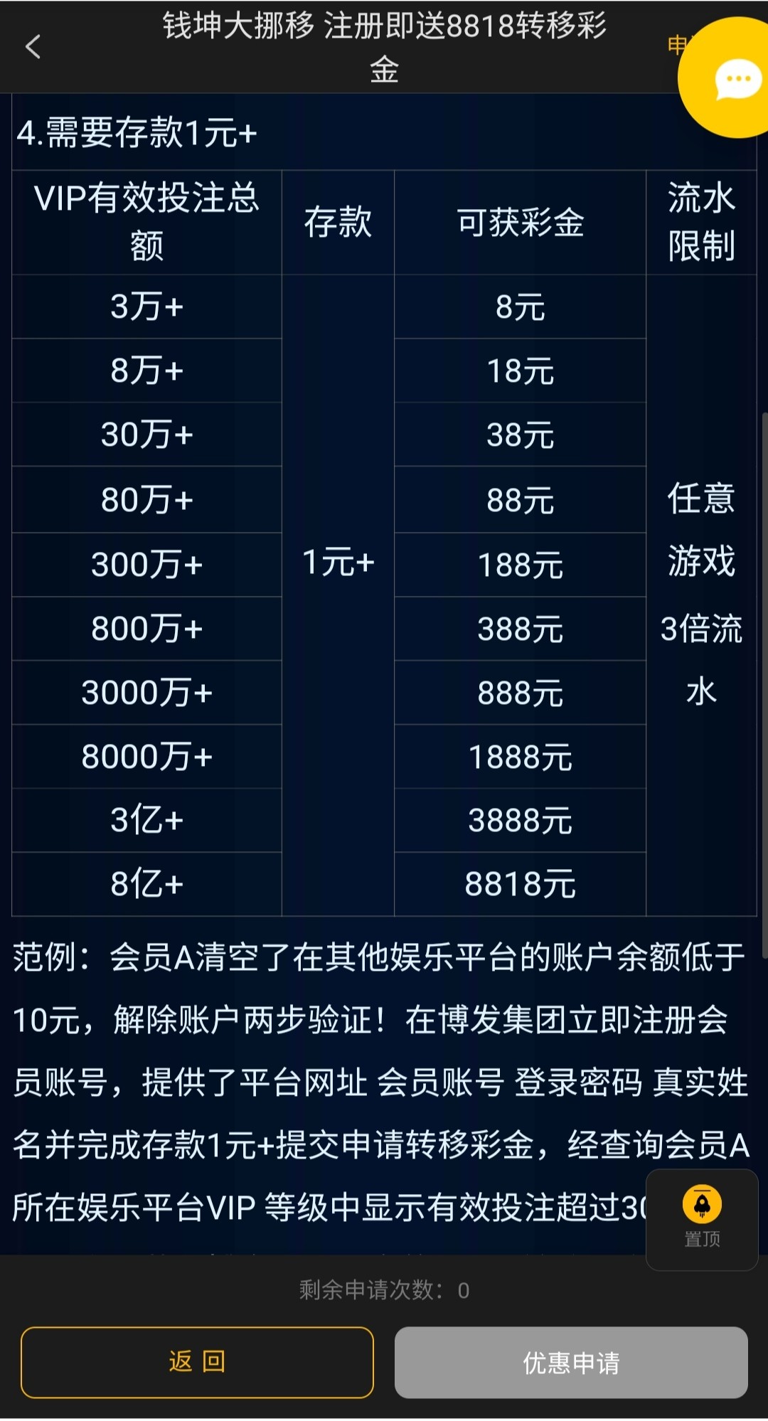 存款1块可以申请钱坤大挪移彩金,类似bc贷,拿流水多的去申请  8818.com