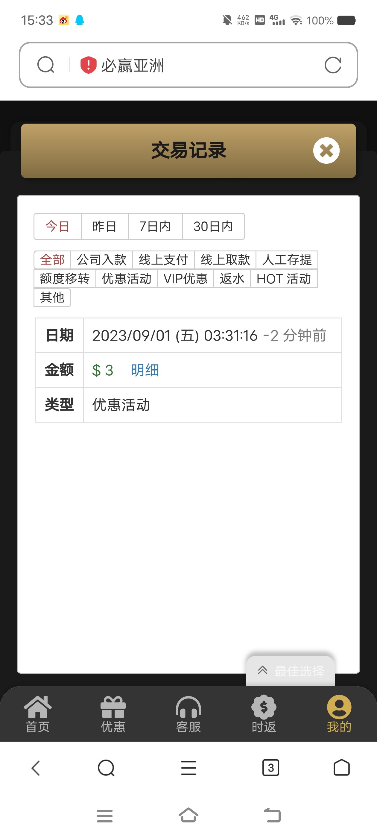 必赢老用户9月回馈彩金