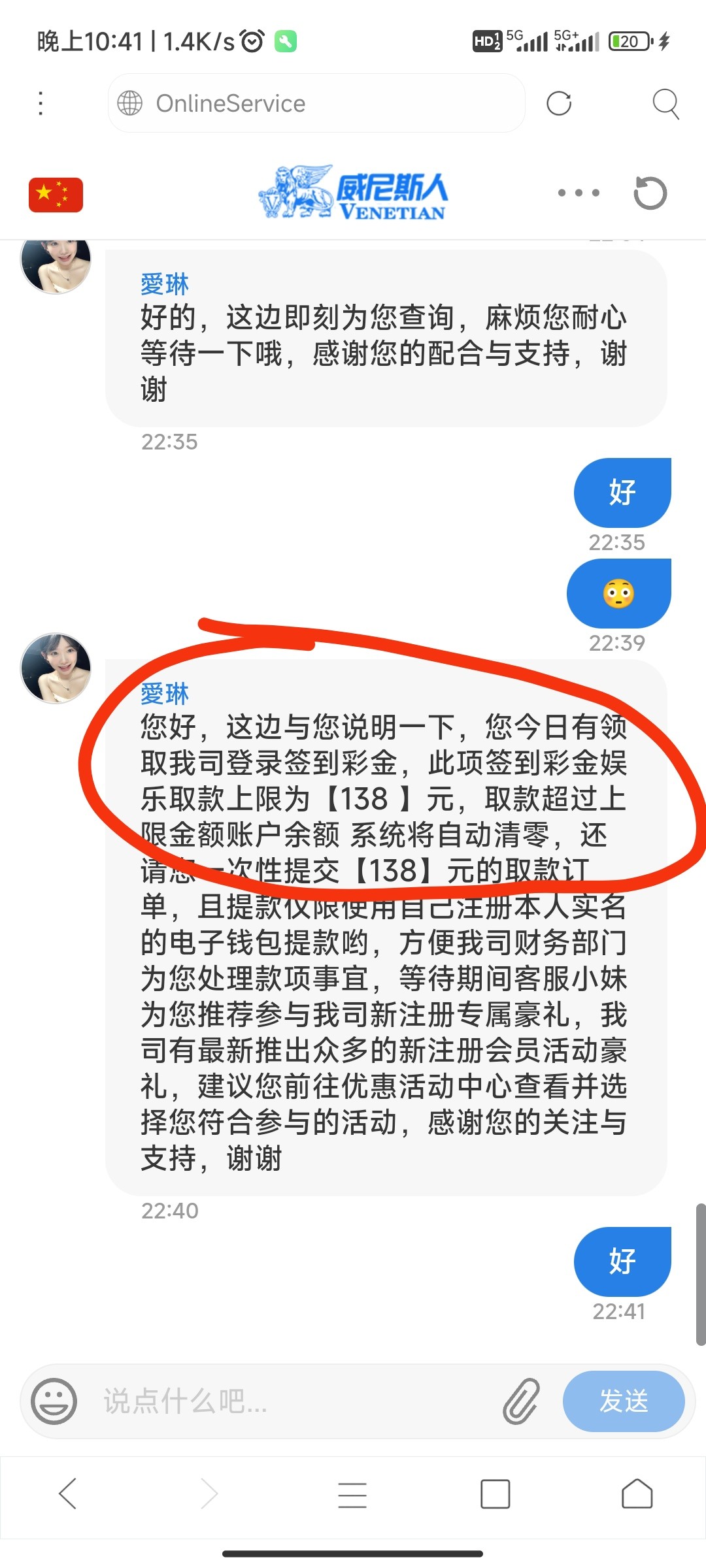 打到105不给提要充100 充了打上1104客服又说签到的钱只可以体现138剩余的全给我扣了666