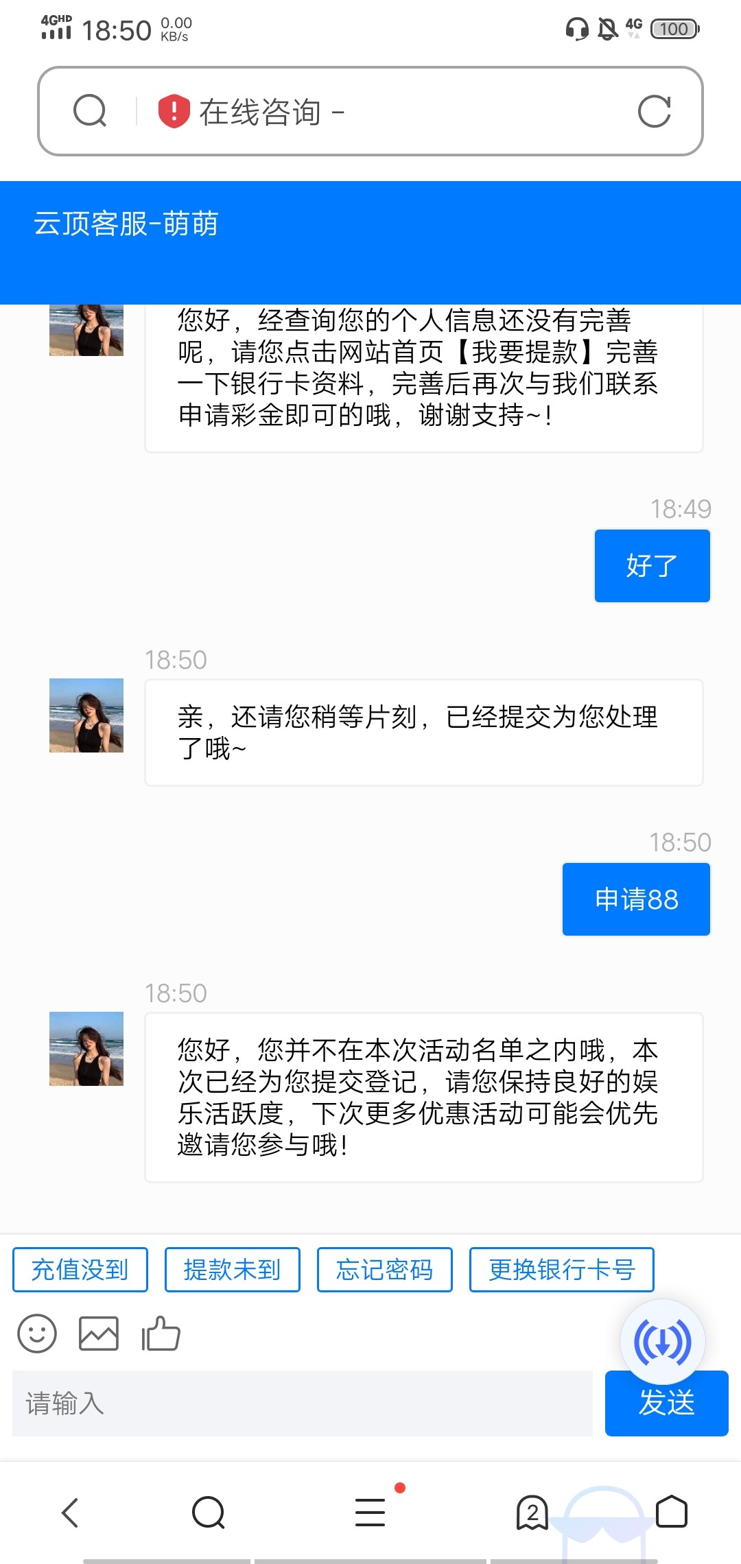 一新用户注册绑卡绑邮箱找客服申请88彩金,二新用户注册绑卡找客服申请45彩金出款自测切记勿充值黄了就等人少去。