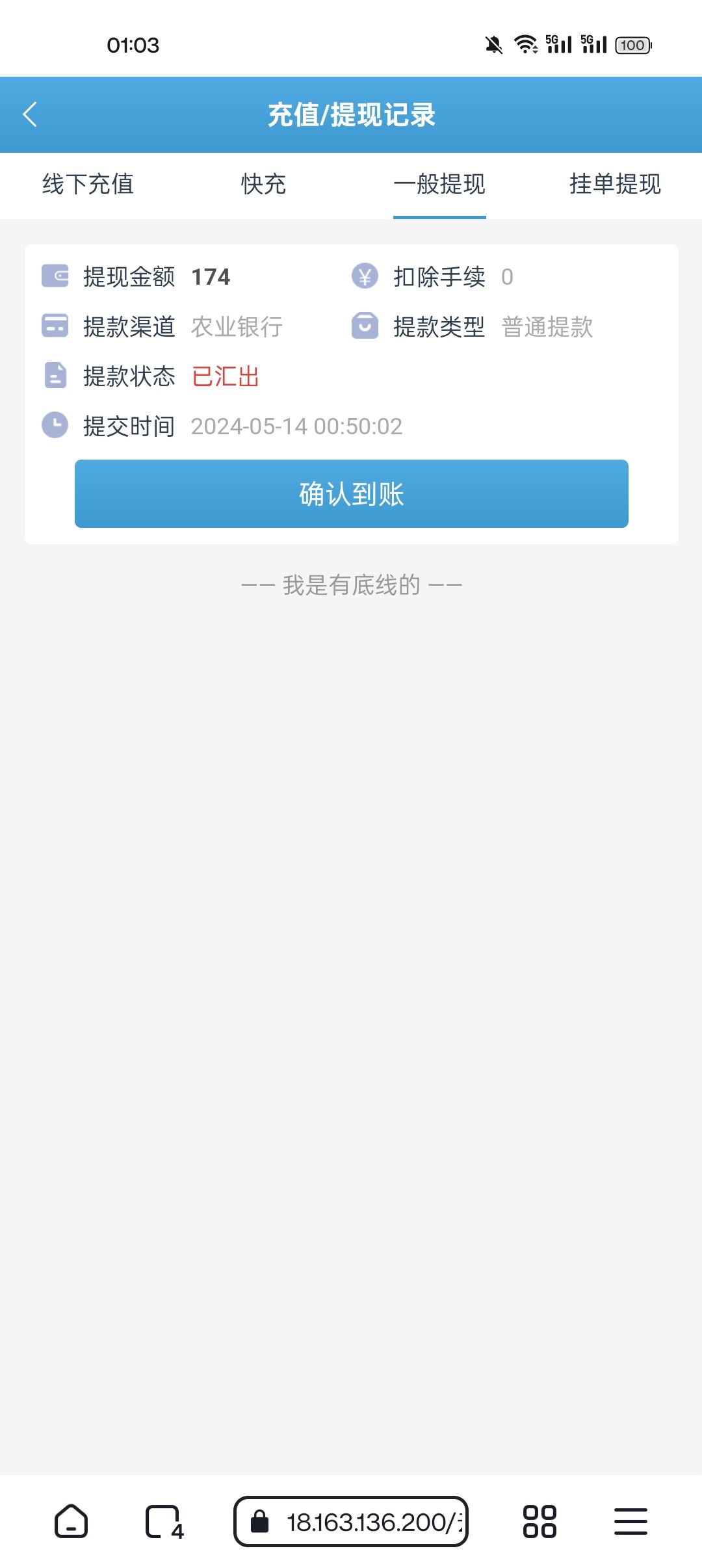 提了100到账了