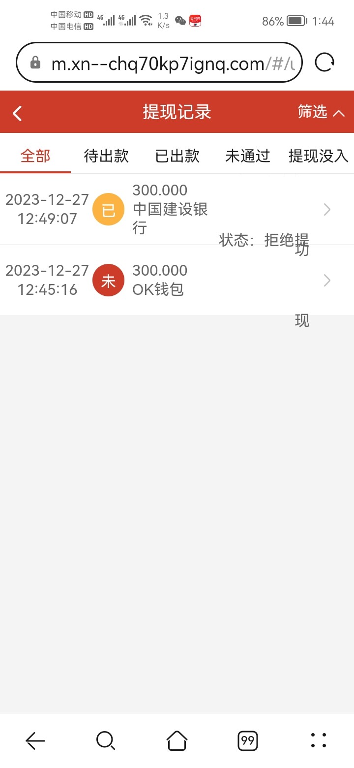 wuh123 提现七百显示到账了但是银行卡没收到