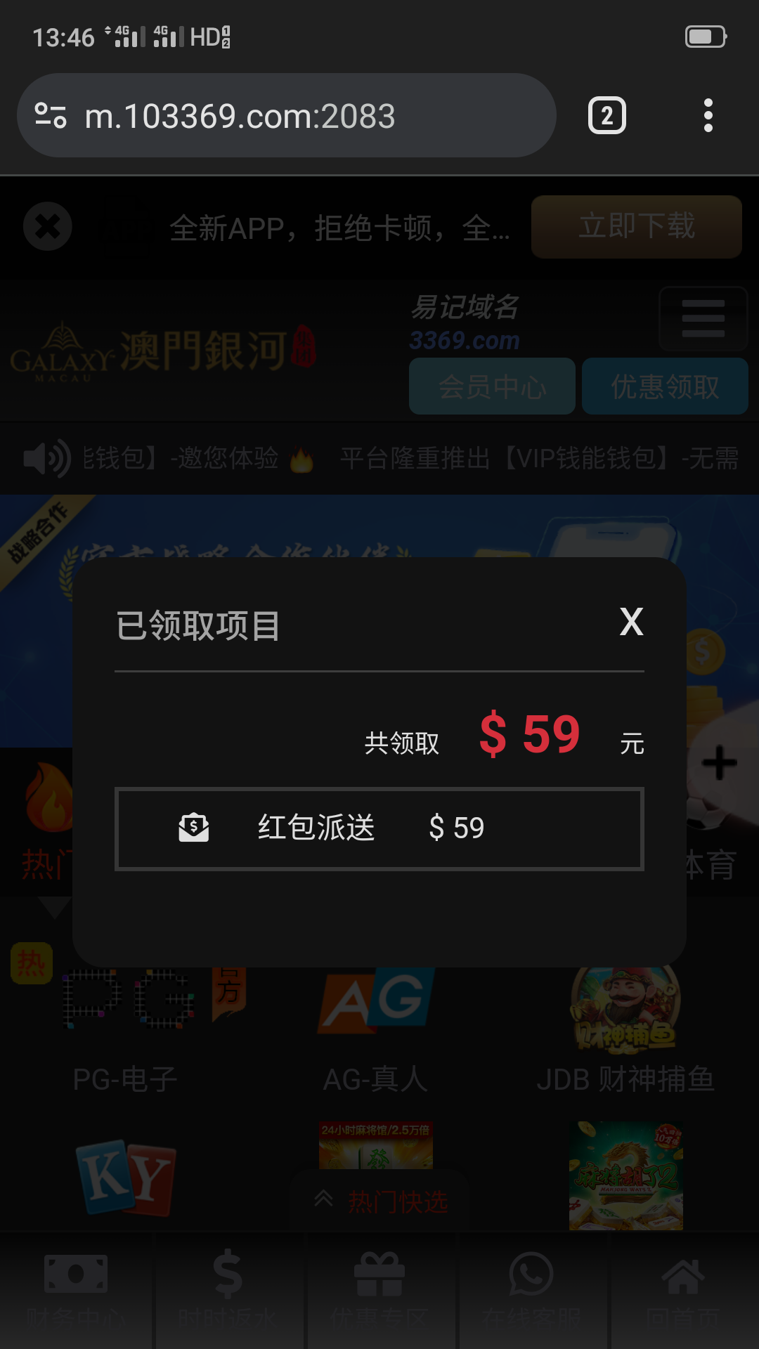 老用户登录回馈彩金