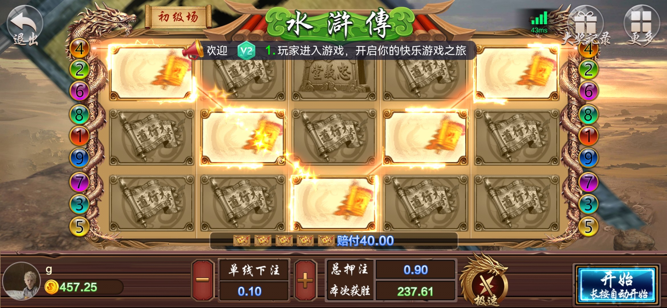 打出来了不知道能不能到,进去玩老虎机点俩下就一百多了