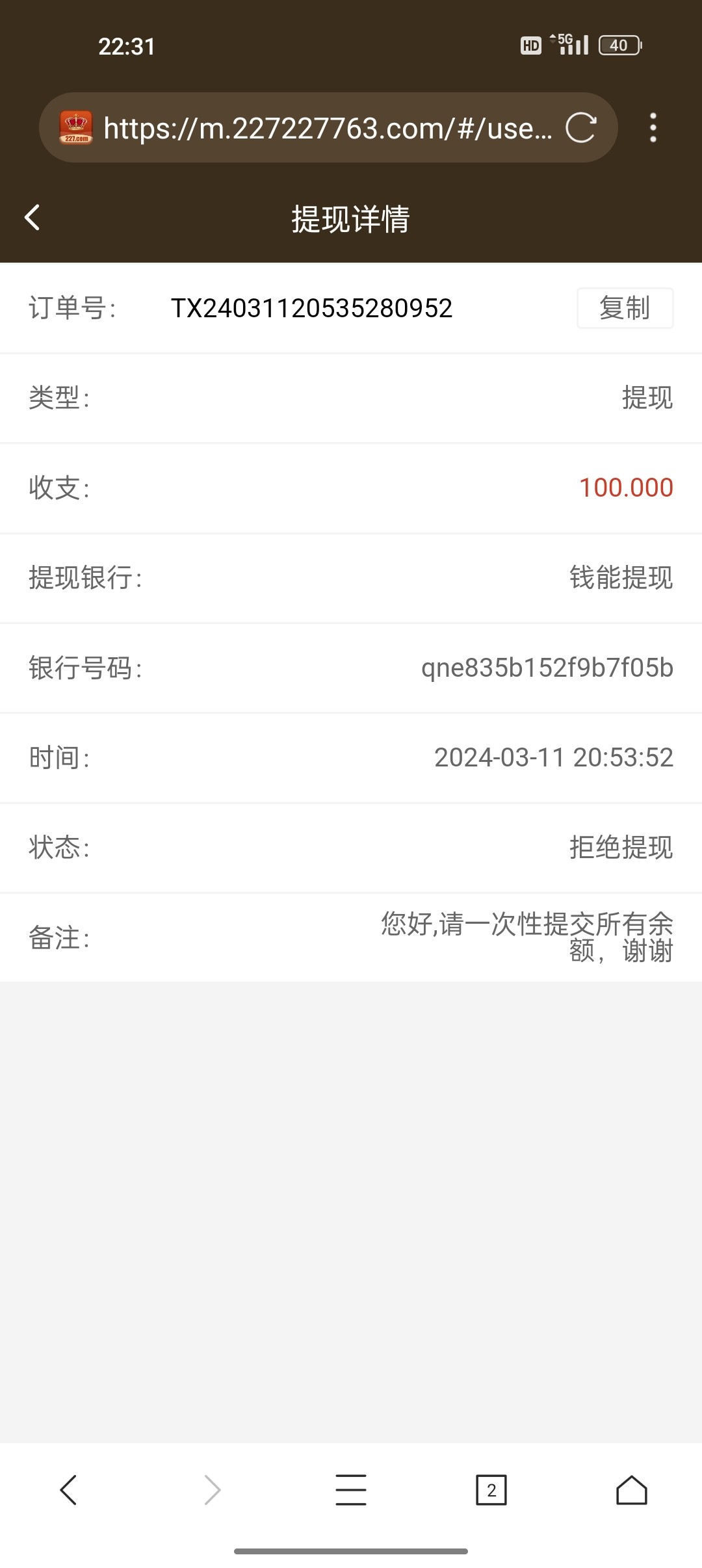 乐与怒 227不支持提现,200余额,提了两次,都是没收
