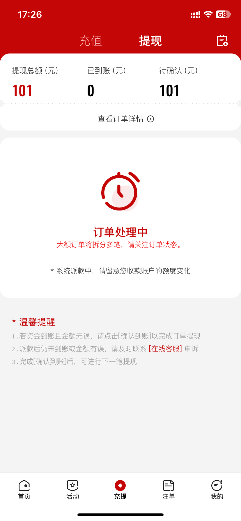 到账了,两个多小时