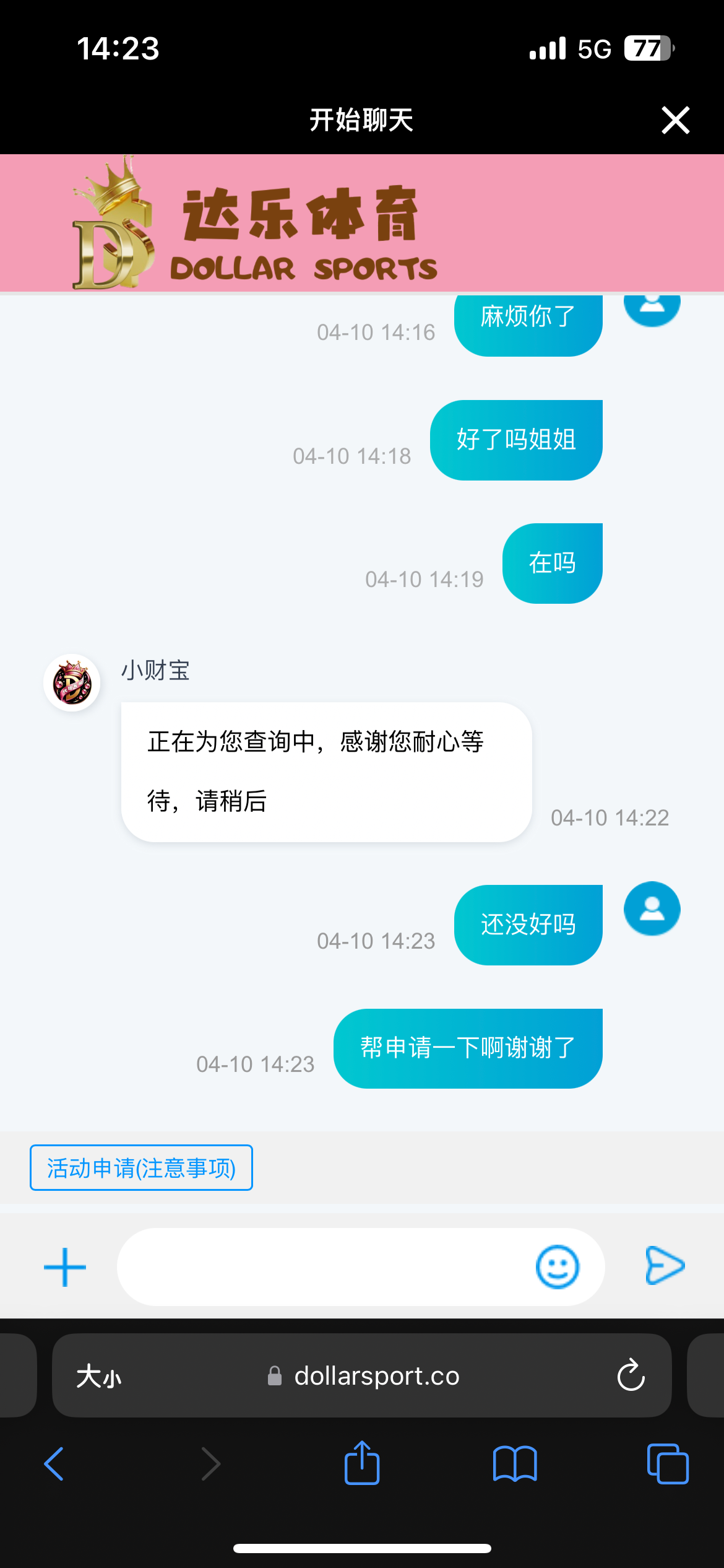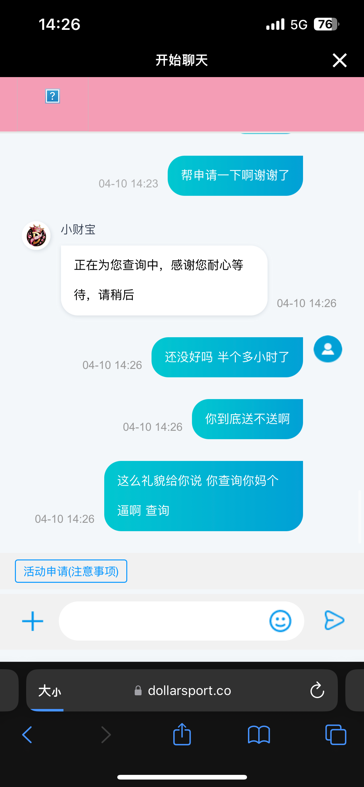 客服跟个哈麻批一样 一直查询中 是个死人 黄了都 半个小时就一直在问 申请彩金要他命一样 黄了 不用去了