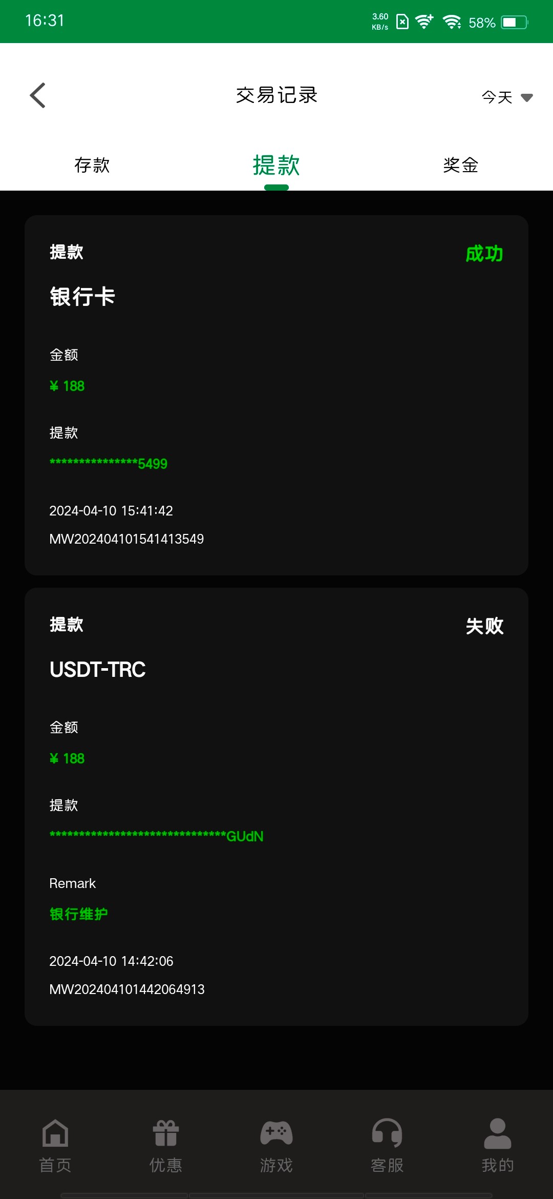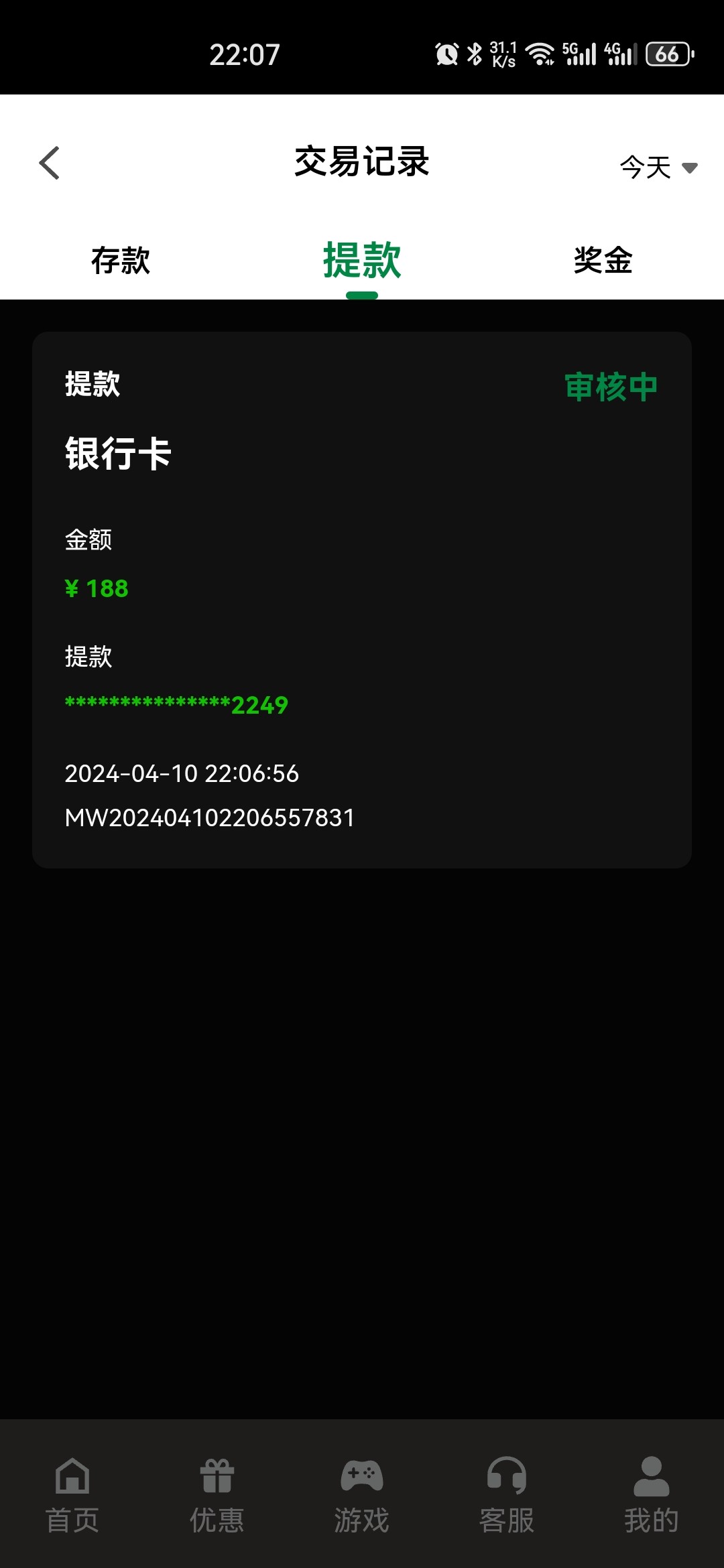 我的188 一个小时才到
