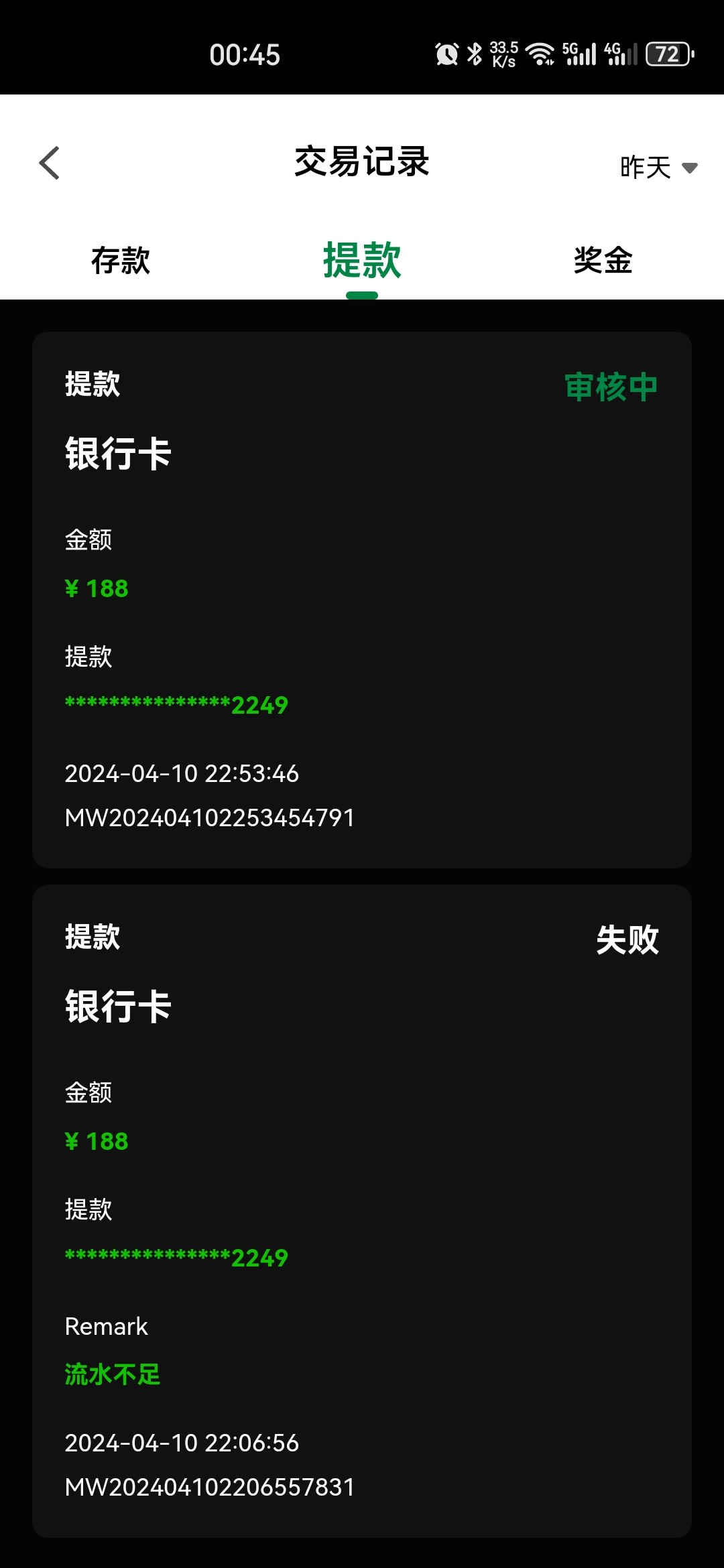 提188,2个多小时到账