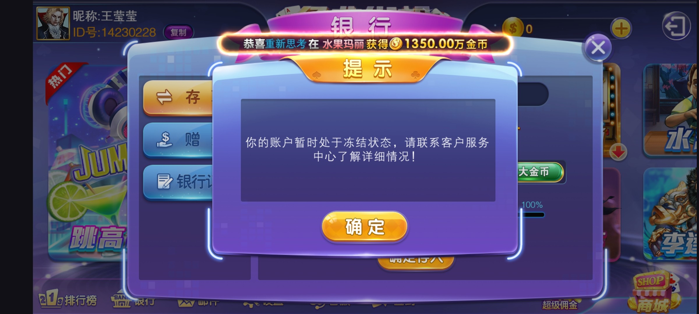 新用户手机号注册去银行哪里设置密码秒10w金币,打到175w去联系商城里面下分,具体自测吧切记勿充值。