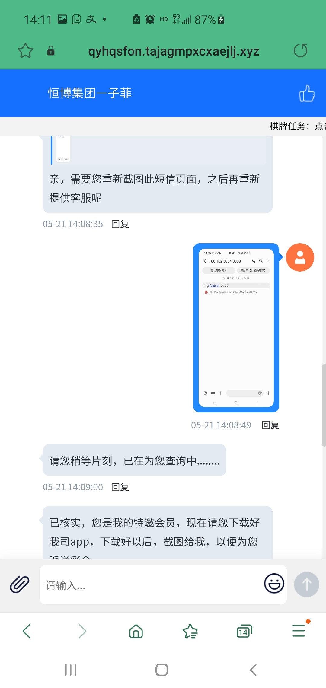 人设 短信图呢发一下 客服要短信截图