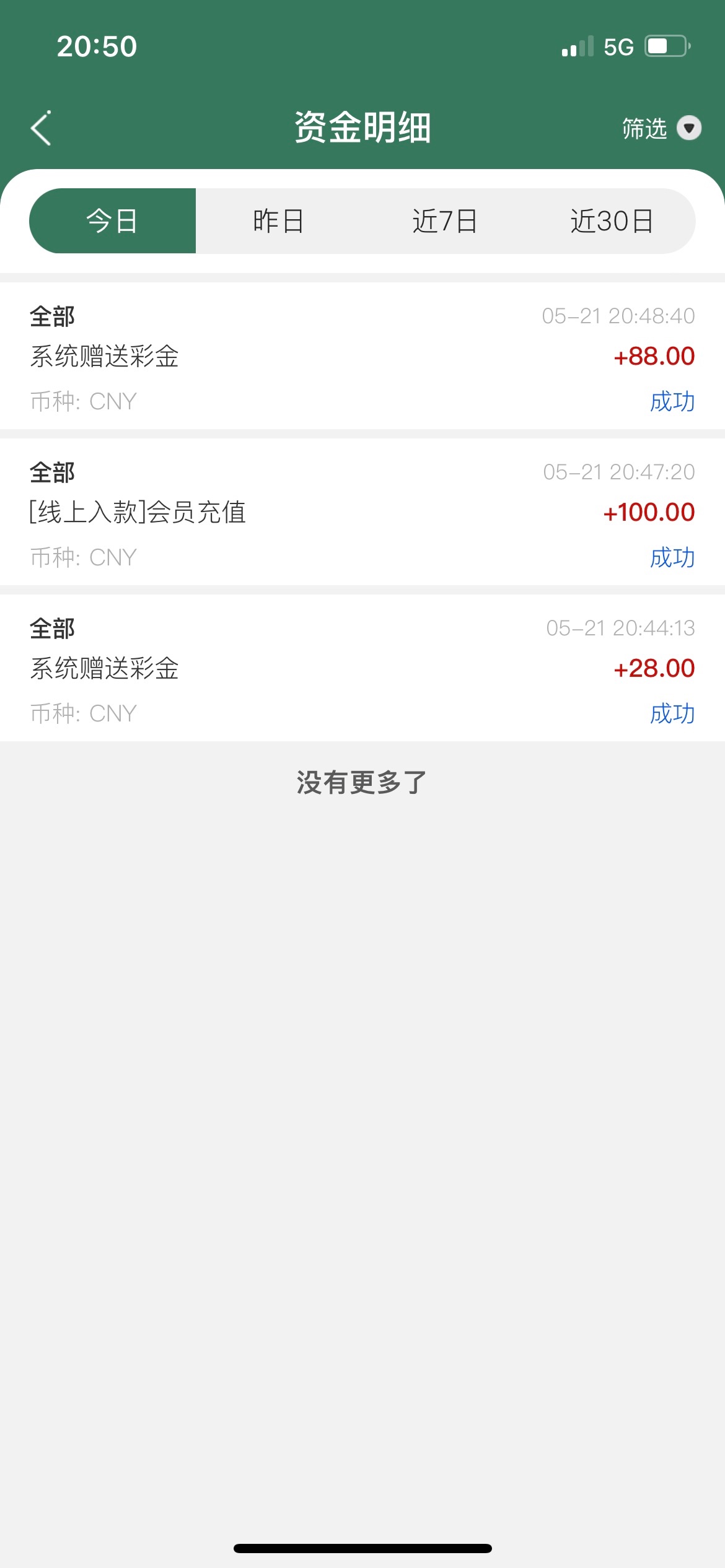 充30送30也没送。注册28那个没送
