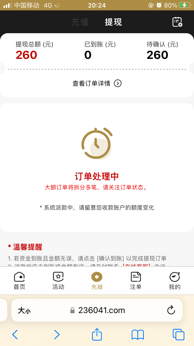 提款260不知道能不能到