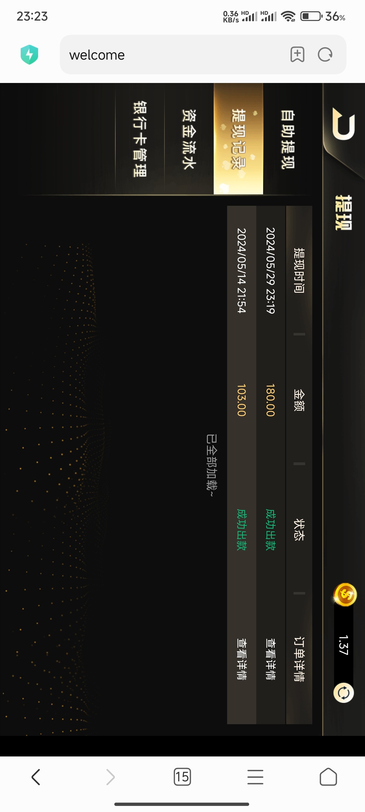 这个是 ky63 吧我存 100 给我送了 100 一杯水不限制出了 300