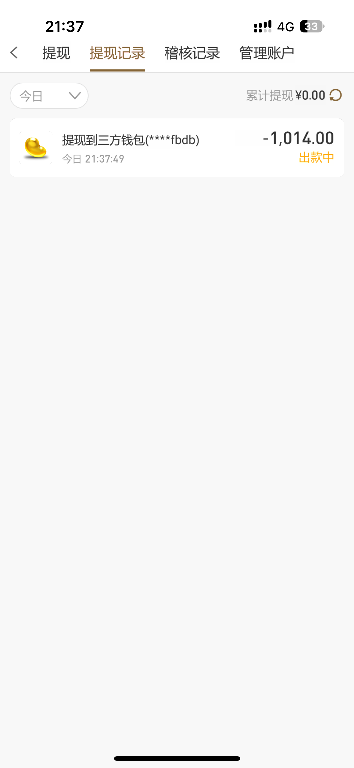 出款到没到 不是最多只能五百吗 我打到一千给我扣除五百然后只能提现五百