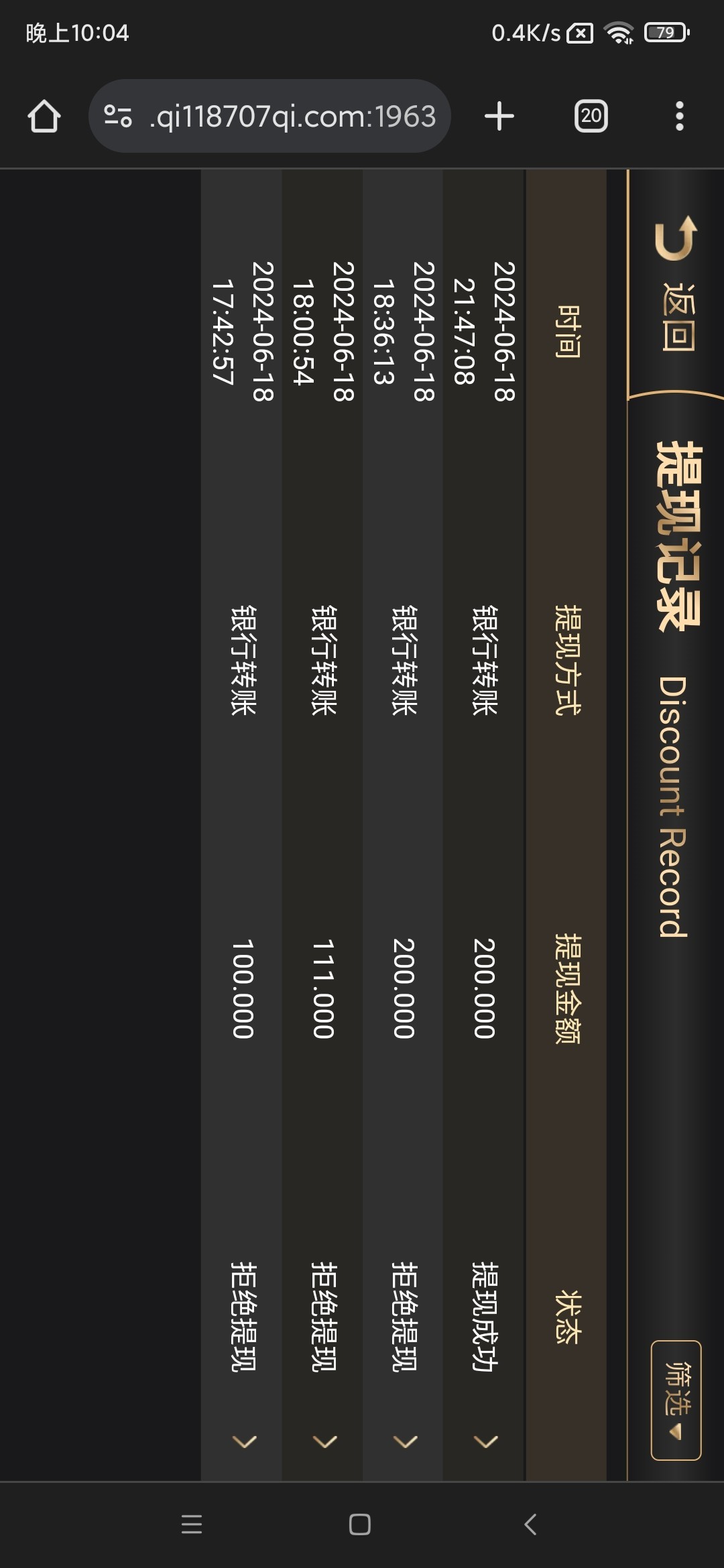 1187.com. 回馈10元的,好几个类似的台子没打出来,这个打出来了,200到账钱