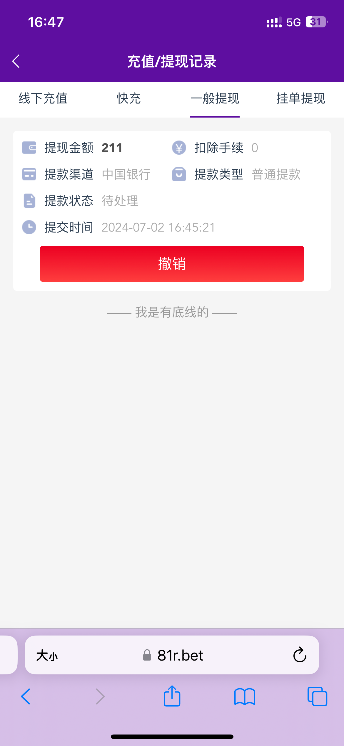 提了140,五分钟到账,这傻逼81,第一次提款210,没绑定邮箱直接退回,让我绑定邮箱,退回之前拉了个假充值订单没付款,居然给我充值成功了,操他妈要打1倍流水所有的,直接挂到140提了。