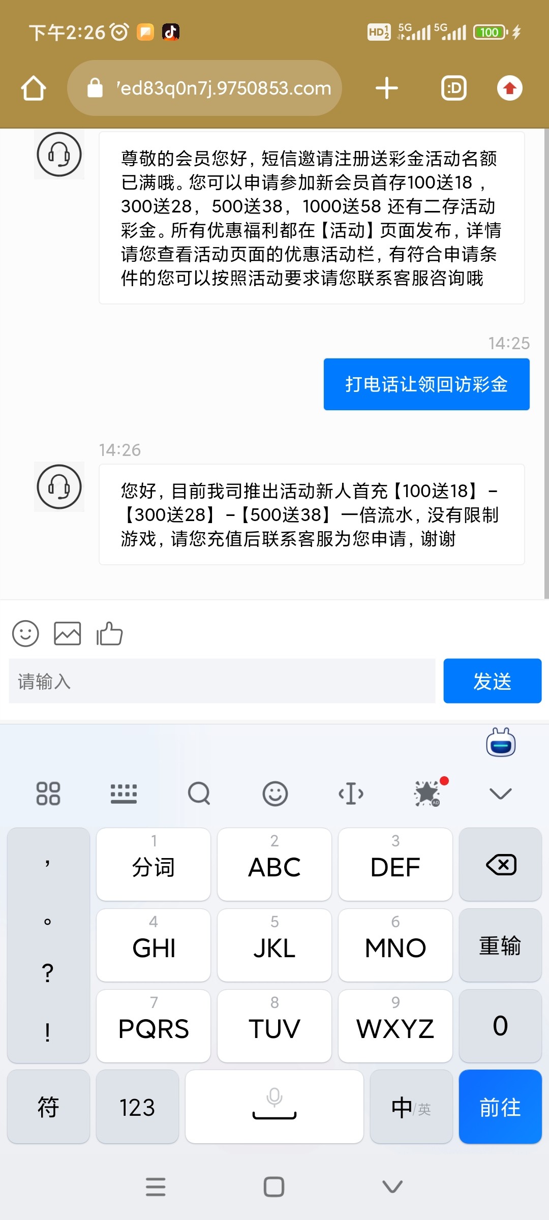 老用户登录找在线客服申请电话回访彩金,碰到就是38彩金,要图就给个16开头的图即可。