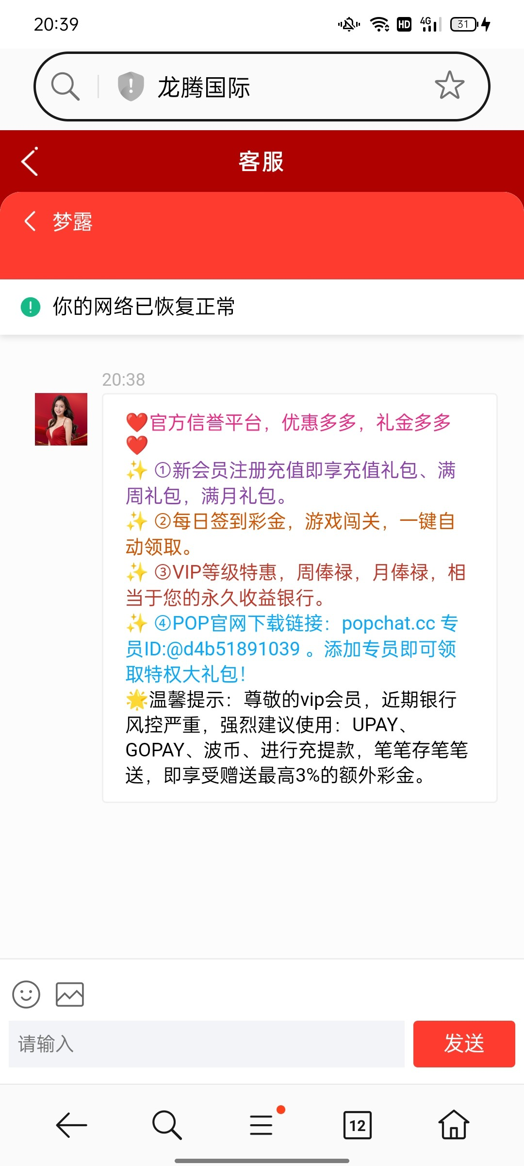 龙腾国际送8元彩金