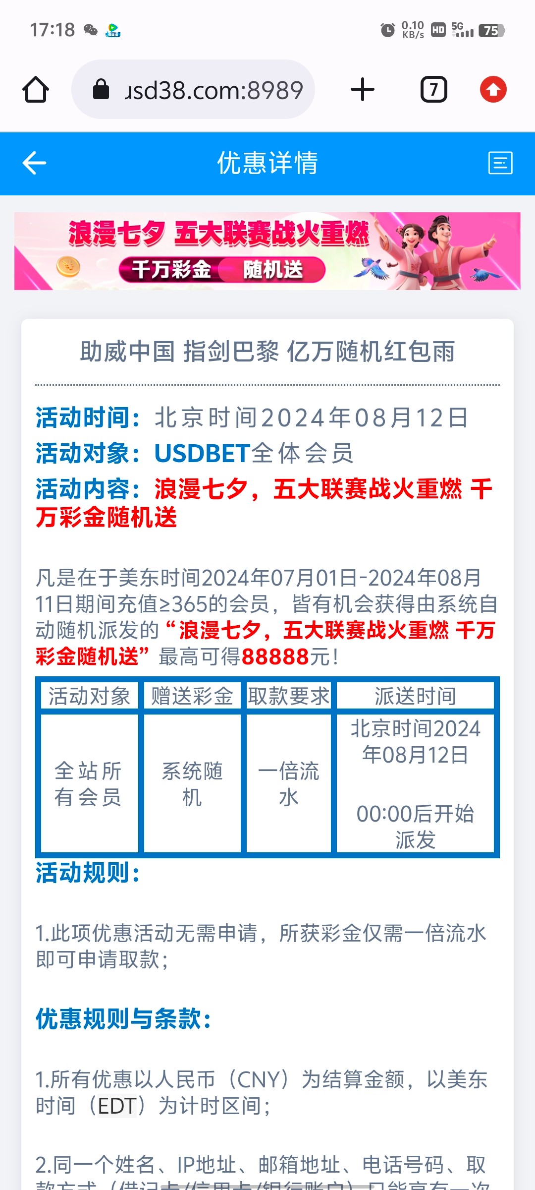 usdbet七夕彩金回馈