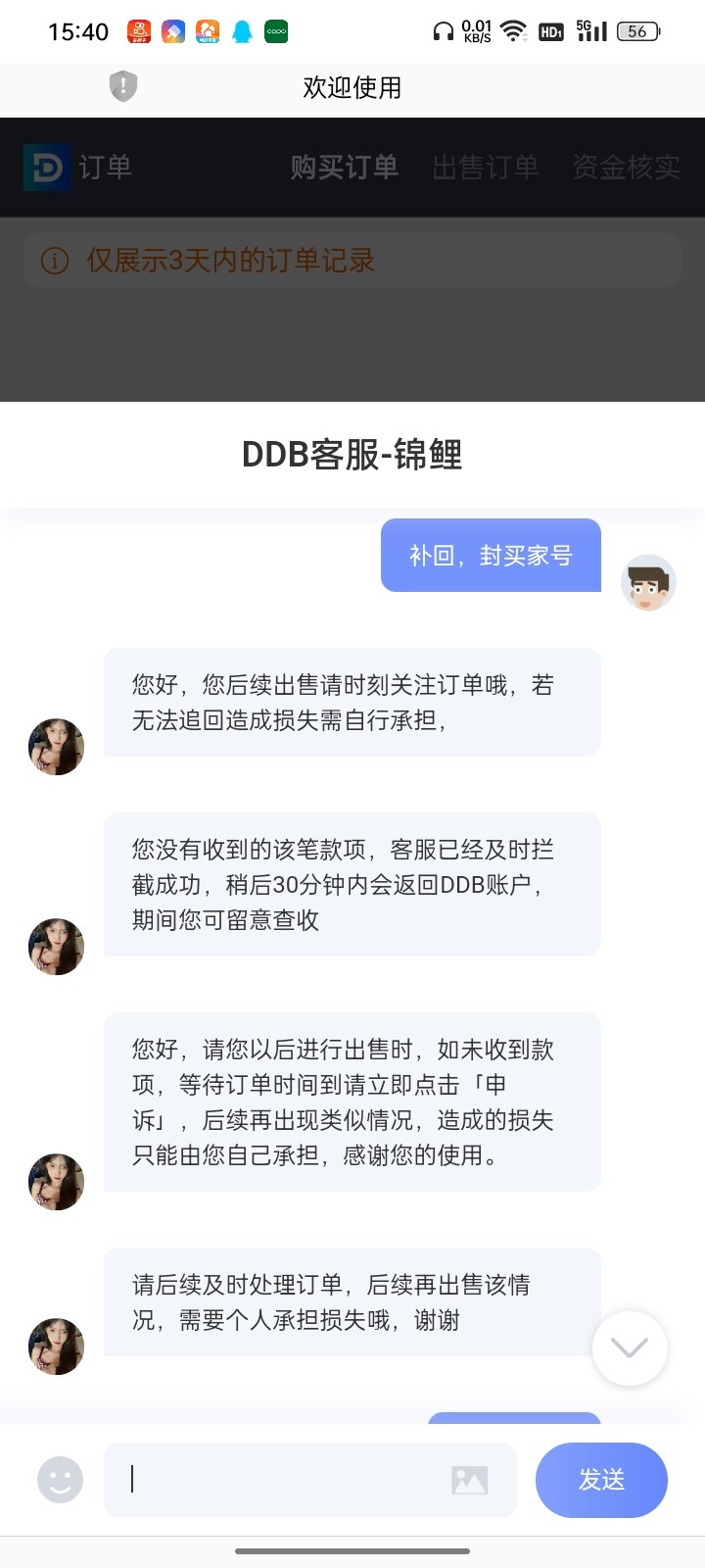 俩天了,申诉了,客服还打币给他,今天一直说,客服才去追踪这笔订单,狗p读直接上分去了,关联平台直接划扣过来,补回