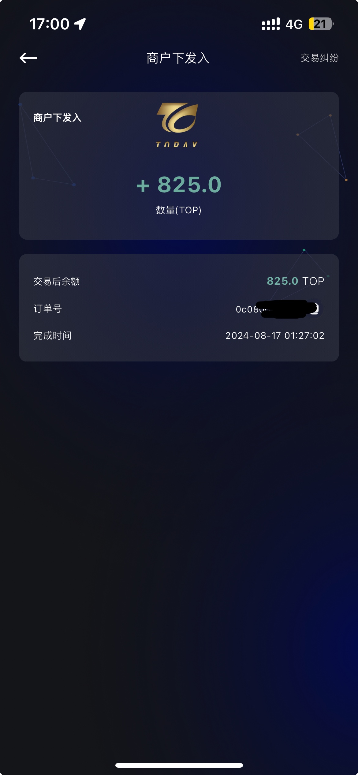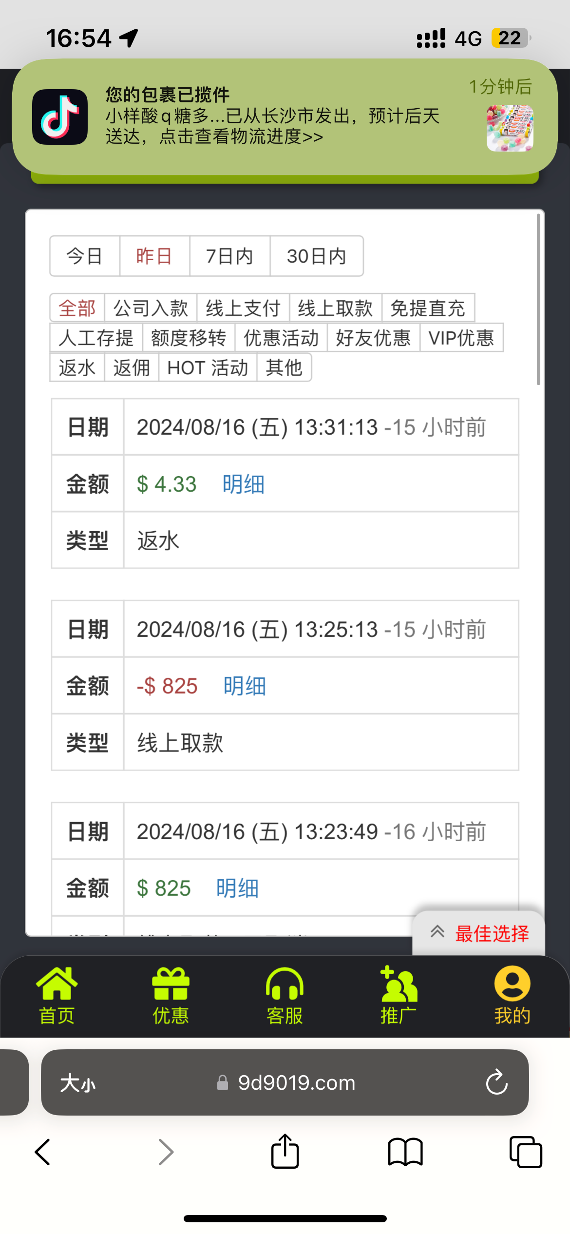 送58   打了825   提现到账了