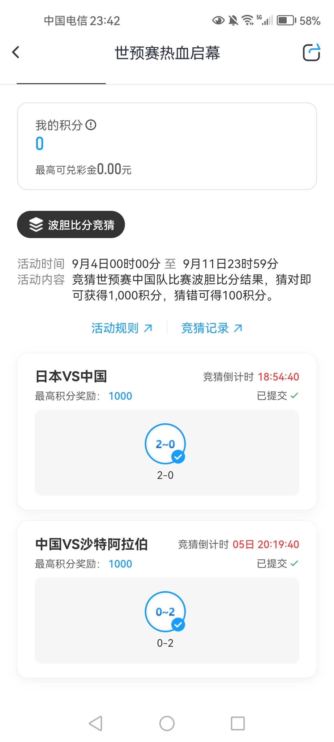 我天天玩我都懒得点这个竞猜,1000积分等于10彩金,波胆难度系数太大了