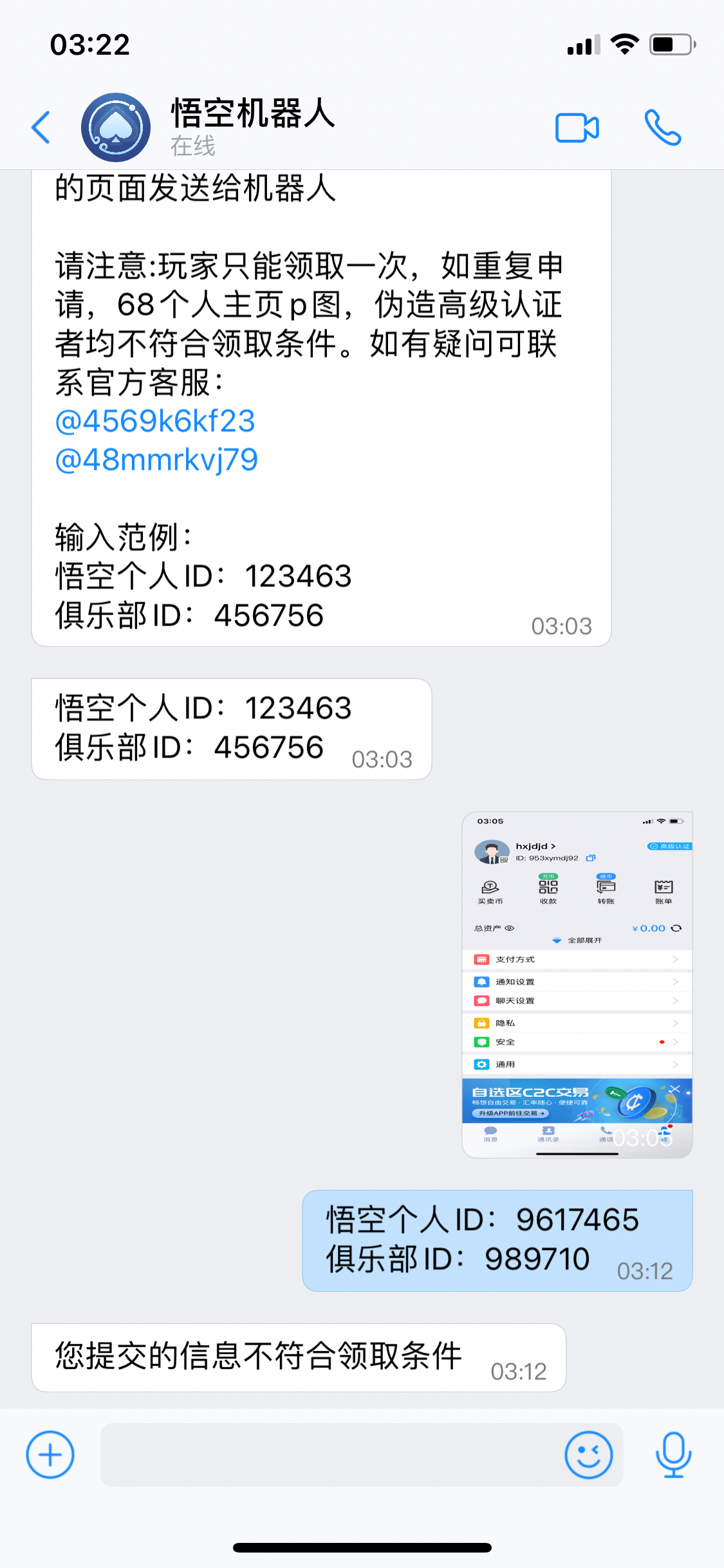 二、下载68软件高级实名后给机器人发账号+俱乐部ID(6位数)秒送100。